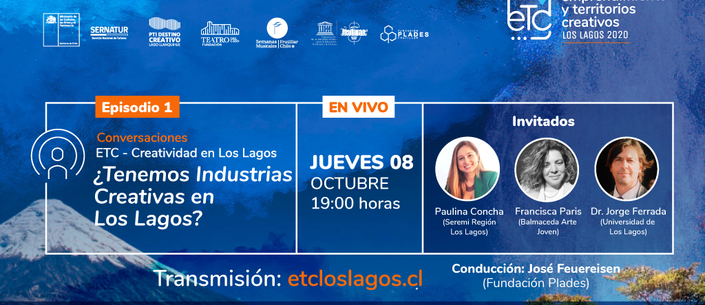 Este jueves 8 de octubre, se abordará el tema «¿Tenemos Industrias Creativas en Los Lagos?” , donde participarán actores claves de la región chilena, como Paulina Concha, seremi de Cultura Los Lagos, Francisca Paris, directora regional de Balmaceda Arte Joven y Jorge Ferrada, secretario académico Universidad de Los Lagos. El espacio será conducido por José Feuereisen, director sociocultural e inteligencia territorial de Fundación Plades Frutillar.