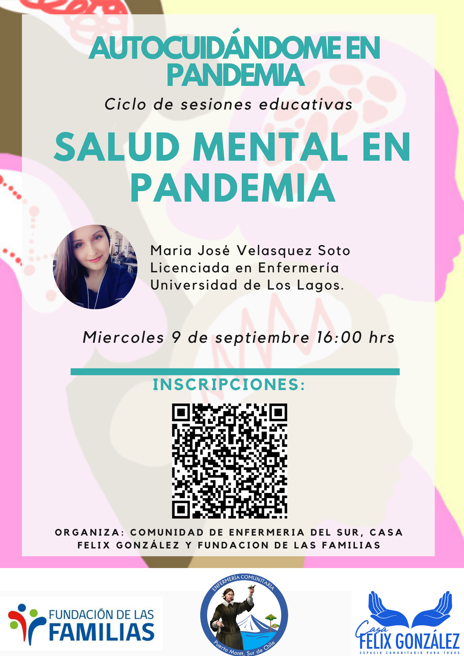 Las sesiones educativas se realizan todos los miércoles a las 16 horas, serán mediante vía Meet, hasta el 14 de octubre. Al mismo tiempo se han desarrollado acciones formativas dirigidas a estudiantes e internos de Enfermería de la Universidad de Los Lagos.