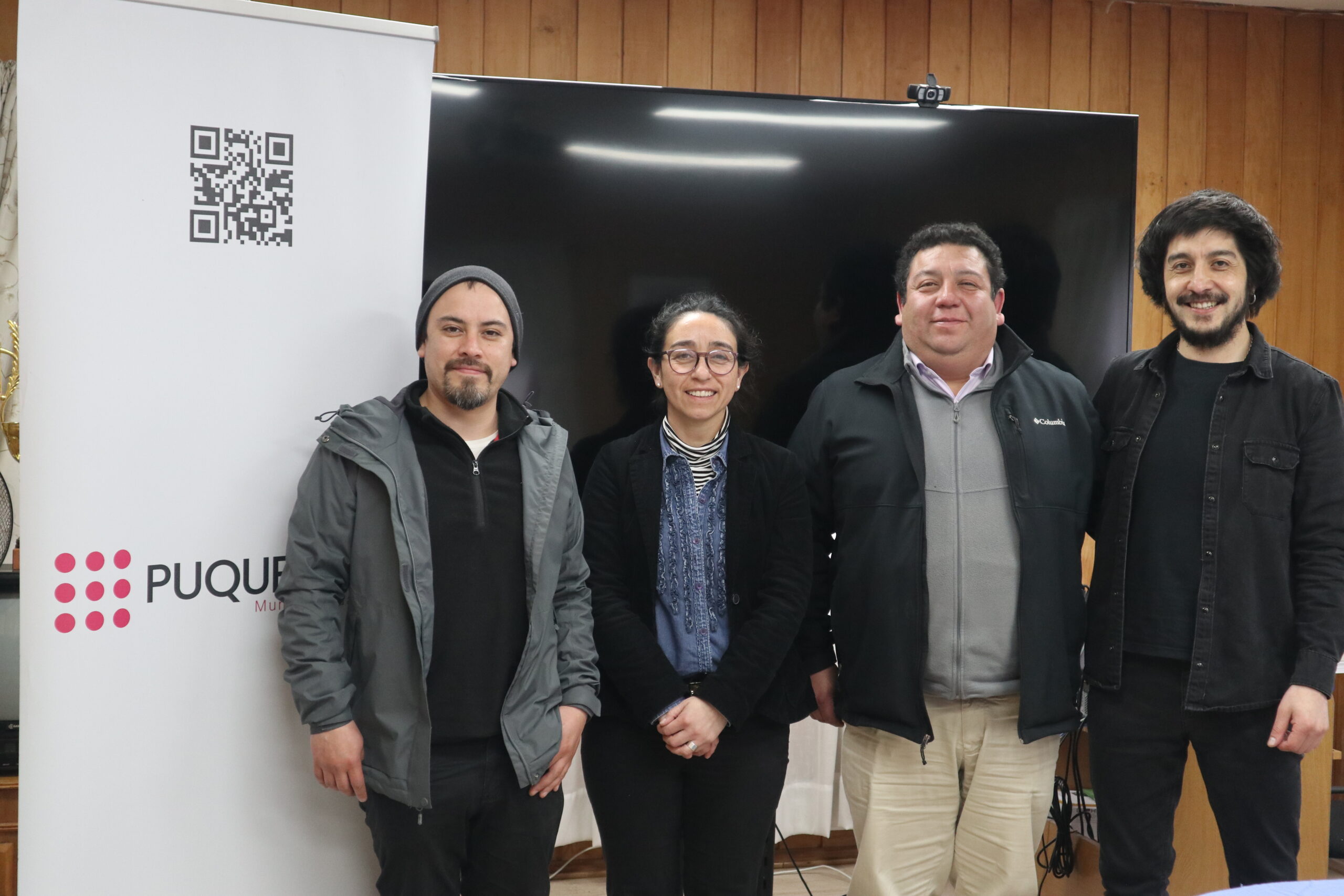 * En la fotografía, de izquierda a derecha: Felipe Subiabre, coordinador territorial para Chiloé y Palena del Proyecto Anillo; Cecilia Silva, Administradora Municipal de la Municipalidad de Puqueldón; Juan Carlos Nahuel, encargado de la Oficina de Fomento Productivo de la Municipalidad de Puqueldón; y Eduardo Mondaca, director del Magíster en Gobernanza Territorial de la Universidad de Los Lagos.