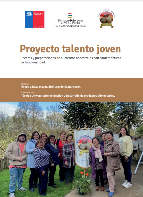 El día 6 de diciembre en dependencias del Aula Magna de la Universidad de Los Lagos, se dio término al proyecto Talento Joven, “Recetas y preparaciones de alimentos ancestrales con características de funcionalidad”. La iniciativa fue ejecutada por el 4° semestre de la carrera Técnico Universitario en Gestión y Desarrollo de productos alimentarios en conjunto con el Club del adulto mayor “Disfrutando el Atardecer”.