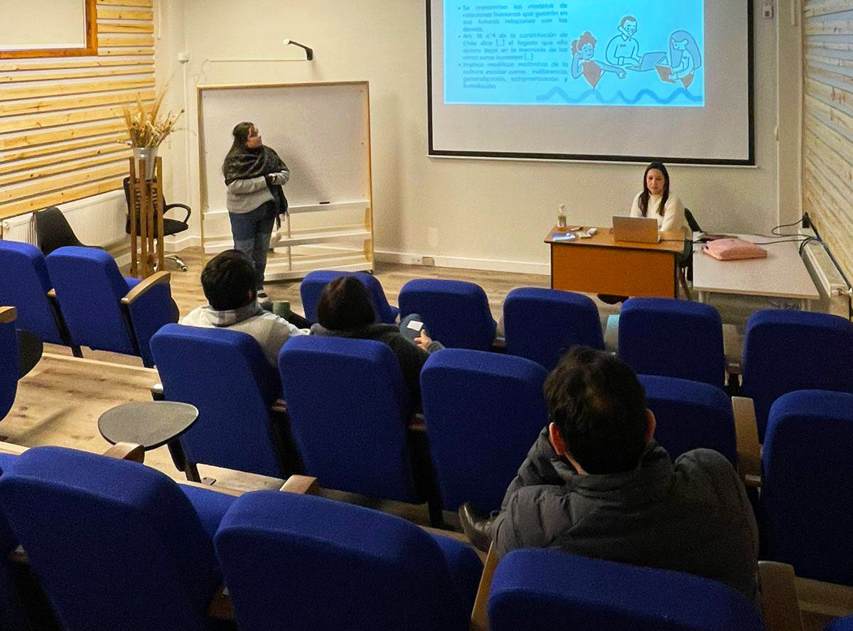 “El taller se realiza en conmemoración del mes de la convivencia estudiantil y el buen trato, siendo esta actividad parte del protocolo de acción del buen trato y la sana convivencia estudiantil, el cual nos mandata a realizar acciones de promoción del buen trato y prevención de diversas situaciones que puedan alterar la convivencia estudiantil. Como SEMDA realizamos esta jornada abierta a la comunidad para poder generar un espacio de diálogo y encuentro entre estudiantes, docentes y funcionarios/as, para reflexionar respecto a esta temática y adquirir herramientas que nos ayuden a mejorar la convivencia en la comunidad universitaria”, señaló Claudia Gatica, jefa del SEMDA Campus Puerto Montt.
