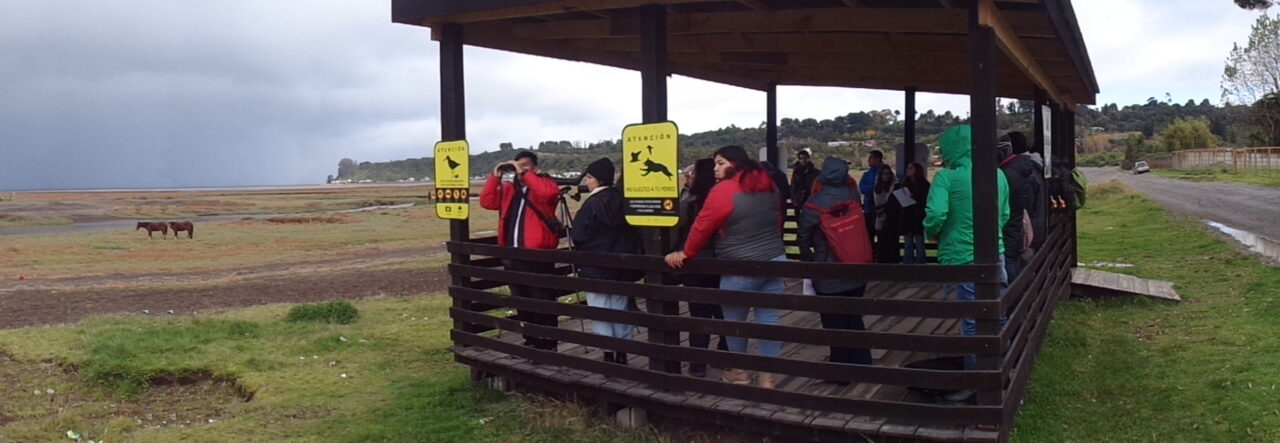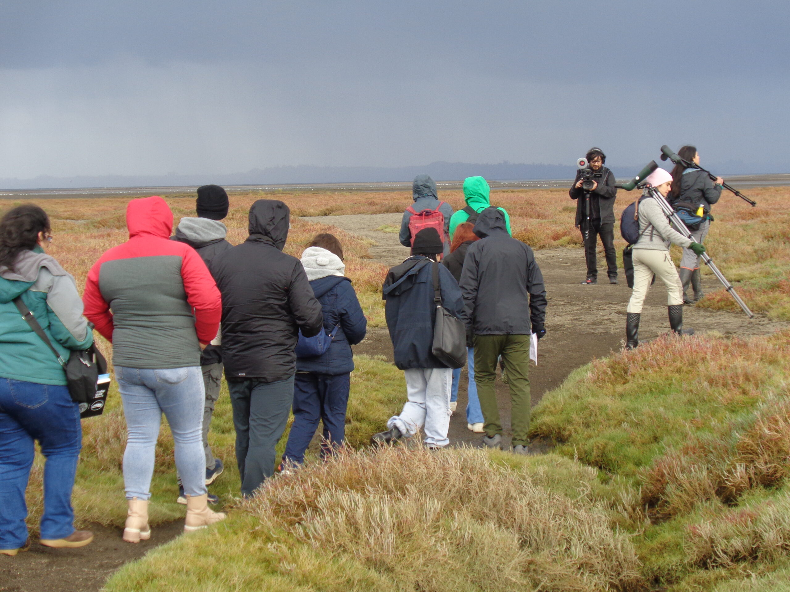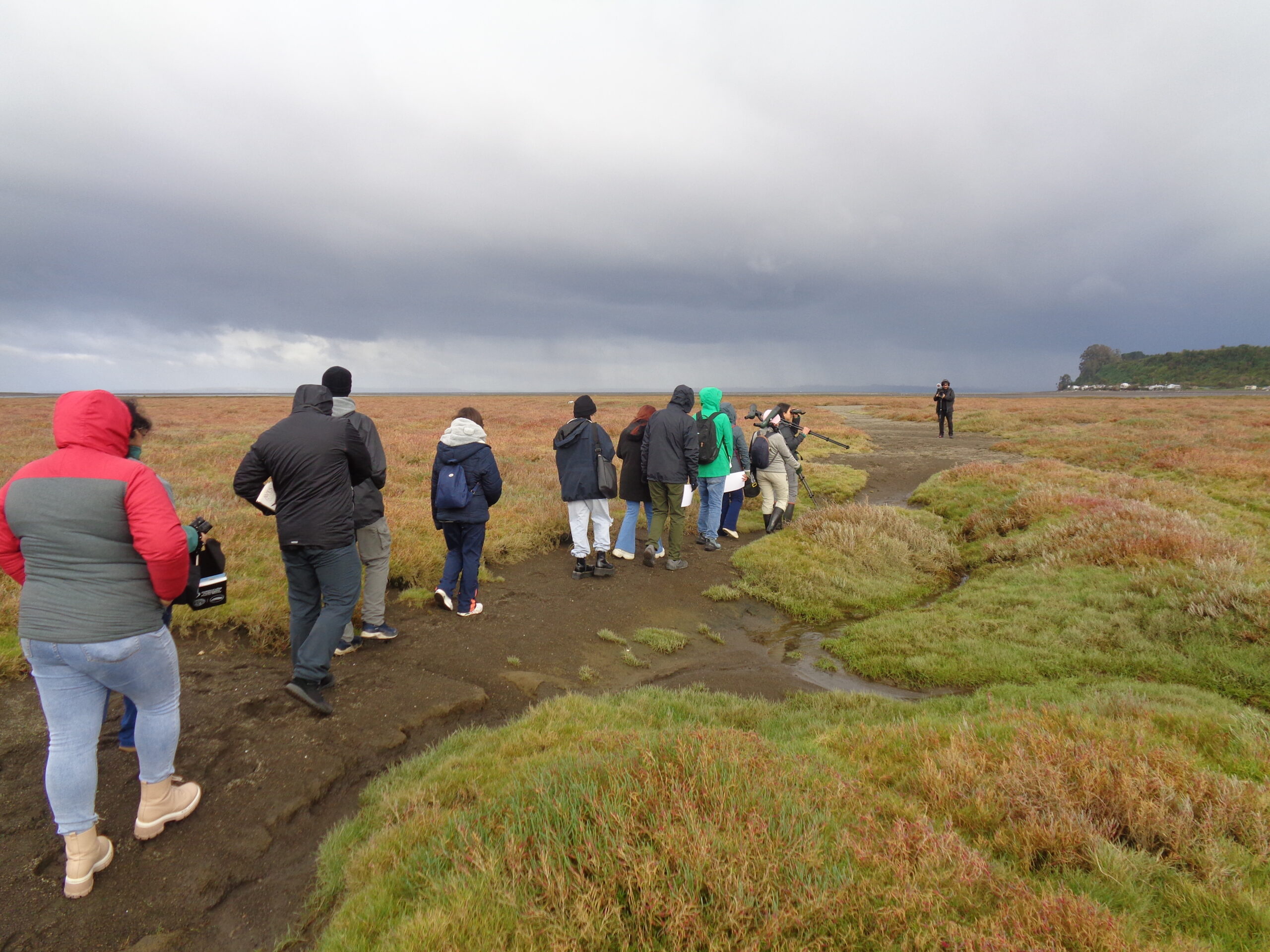 Aunque el día partió con frío, hubo lluvia y en mitad de camino una fuerte granizada, el clima no fue un obstáculo para que entusiastas – muy entusiastas- estudiantes de las carreras de Ingeniería, Arquitectura, Psicología, Enfermería, Derecho y Ciencias Políticas y Administrativas aceptaran la invitación a conocer el Humedal Marino Coihuin Chamiza, red hemisférica de reserva para aves playeras.