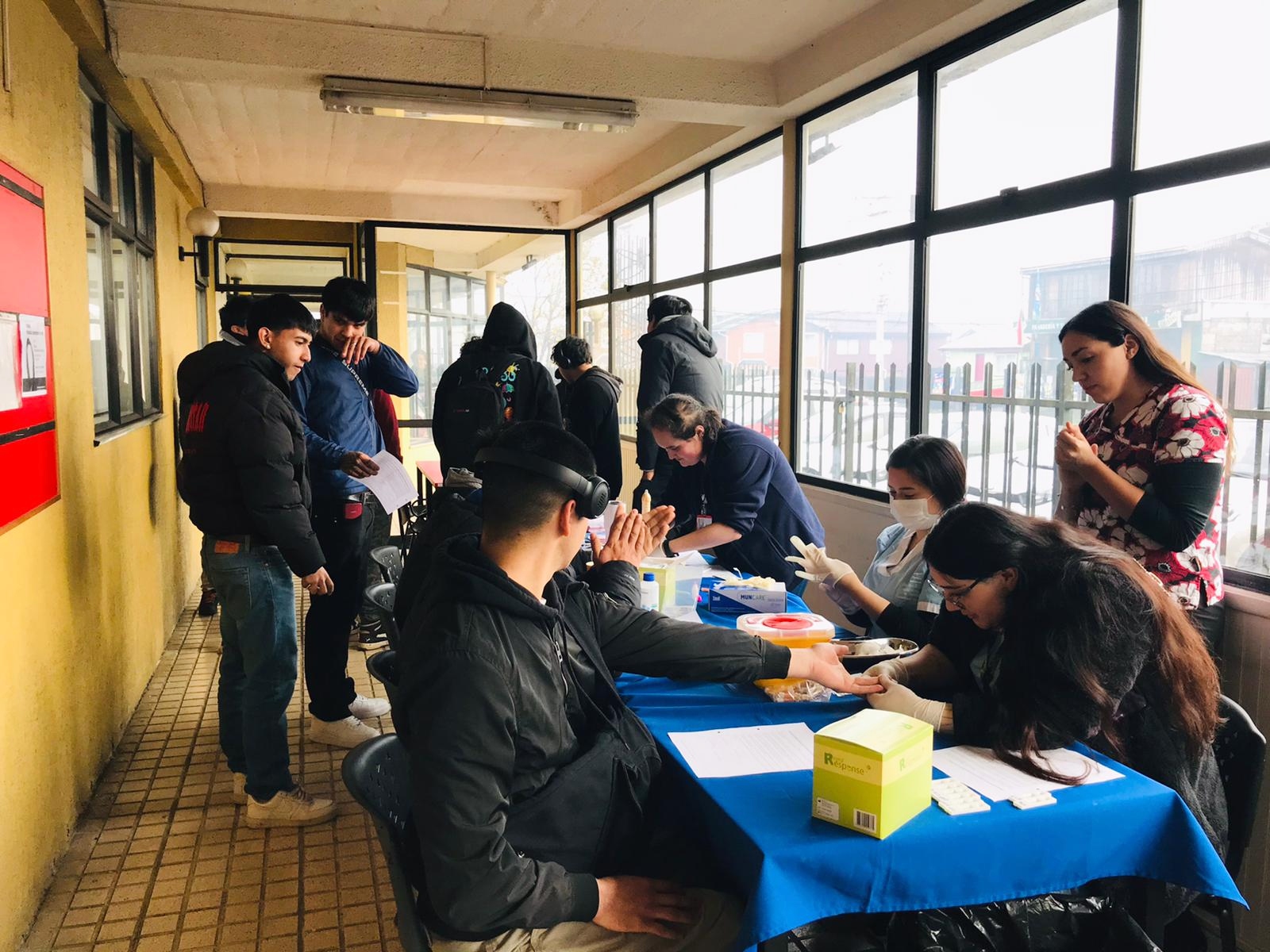 En esta ocasión, estudiantes y funcionarias/os, pudieron realizarse un test rápido de VIH, con el cual recibieron el resultado 15 minutos después. Esta actividad contó con la colaboración de Carolina Gallardo y Catalina Contreras, estudiantes de TENS y de Ana Berta Inzunza, de la carrera de Enfermería. El grupo de estudiantes estuvo a cargo de Yenifer Sotomayor, matrona del SEMDA.