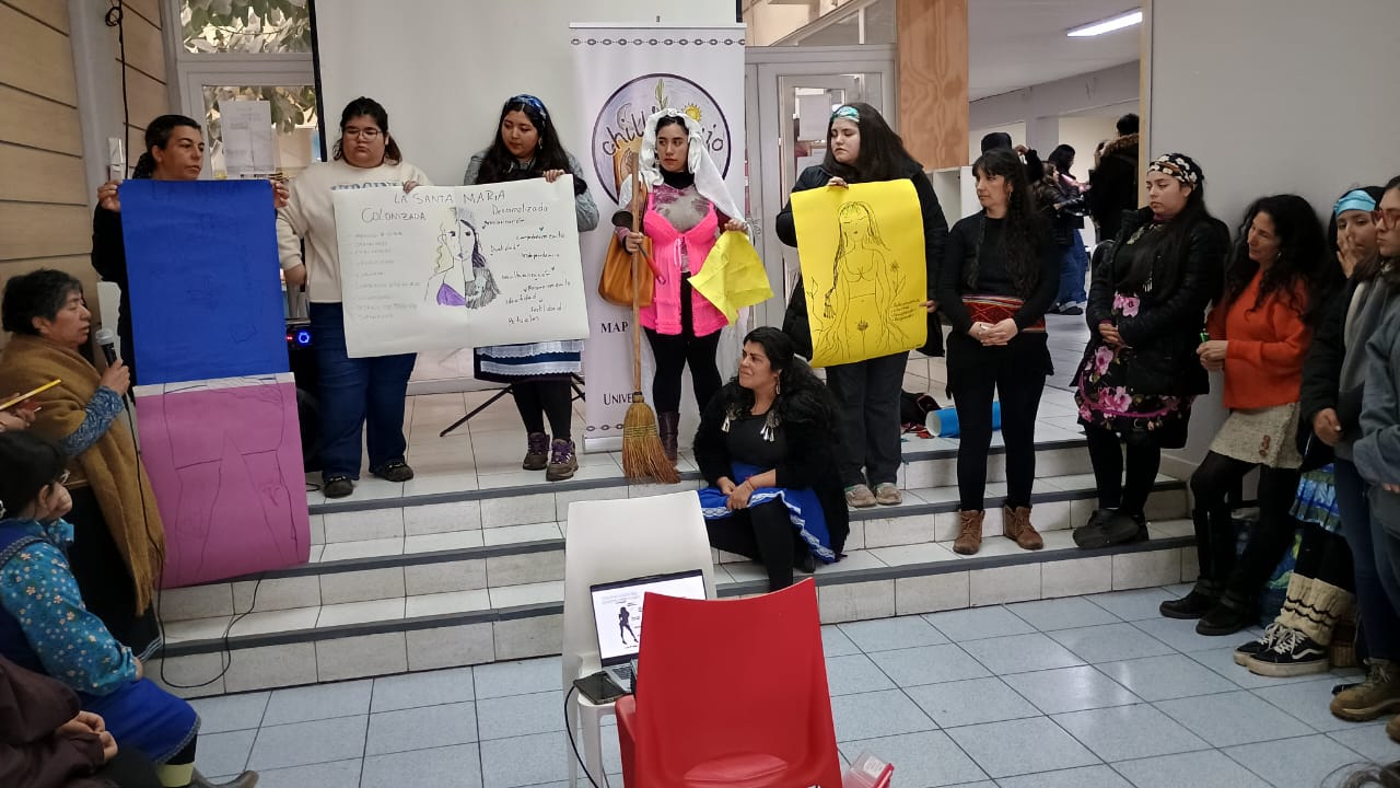 A su vez, el taller Dinámica, cuerpo territorio “La pinta, la niña y la santa María”, con las facilitadoras: Carolina Sandoval, Alen Colipan, Valeria Gómez, presentó un llamado de atención y una crítica al sistema cultural, social y político con la actividad de autopercepción, de la descolonización de los cuerpos mapuche, en que la mujer vive inserta en una sociedad huinca, que impone ciertas estructuras que la mujer mapuche debe cumplir, “pero nosotros como mujeres mapuche muchas veces no alcanzamos esos estándares o bien nos salimos de esto, ya sea por nuestro cuerpo, nuestro rostro, distinto a estereotipo que nos quieren imponer”, afirmó Alejandra Alcafus Barriga, estudiante de la carrera de Derecho de tercer año, secretaria de la Agrupación de estudiantes Chillkatujo ULagos mo”.
