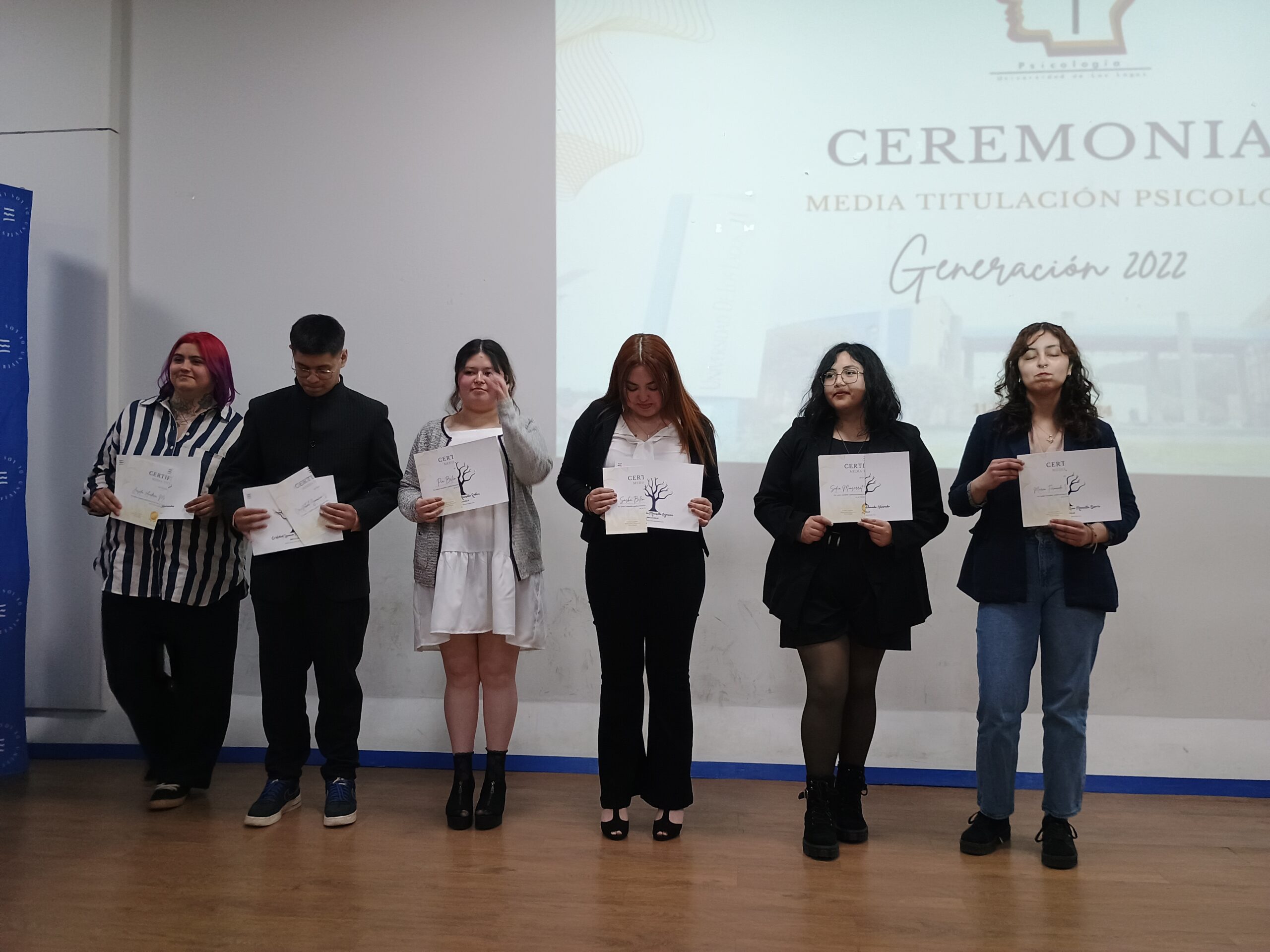 En la ceremonia se les entregó a quienes integran la Generación 2022, dos símbolos de celebración de este hito. Un medio certificado que busca reconocer logros y trabajo realizado, del cual las personas cercanas han sido testigos y asimismo, un árbol de huellas, que representa la vida, la evolución perpetua, la apertura, la búsqueda de conocimientos y el crecimiento.” Este árbol de huellas intenta valorar la formación no sólo en base a contenidos, sino también, reconocer los vínculos y relaciones personales que nos han permitido llegar hasta este momento, simbolizado en las huellas, reconociendo en aquellas, a las personas que nos han dado apoyo y que han permanecido presentes, en estos tres años, para cada uno de nosotros”, explicó Paola Lausen, directora docente de Psicología.