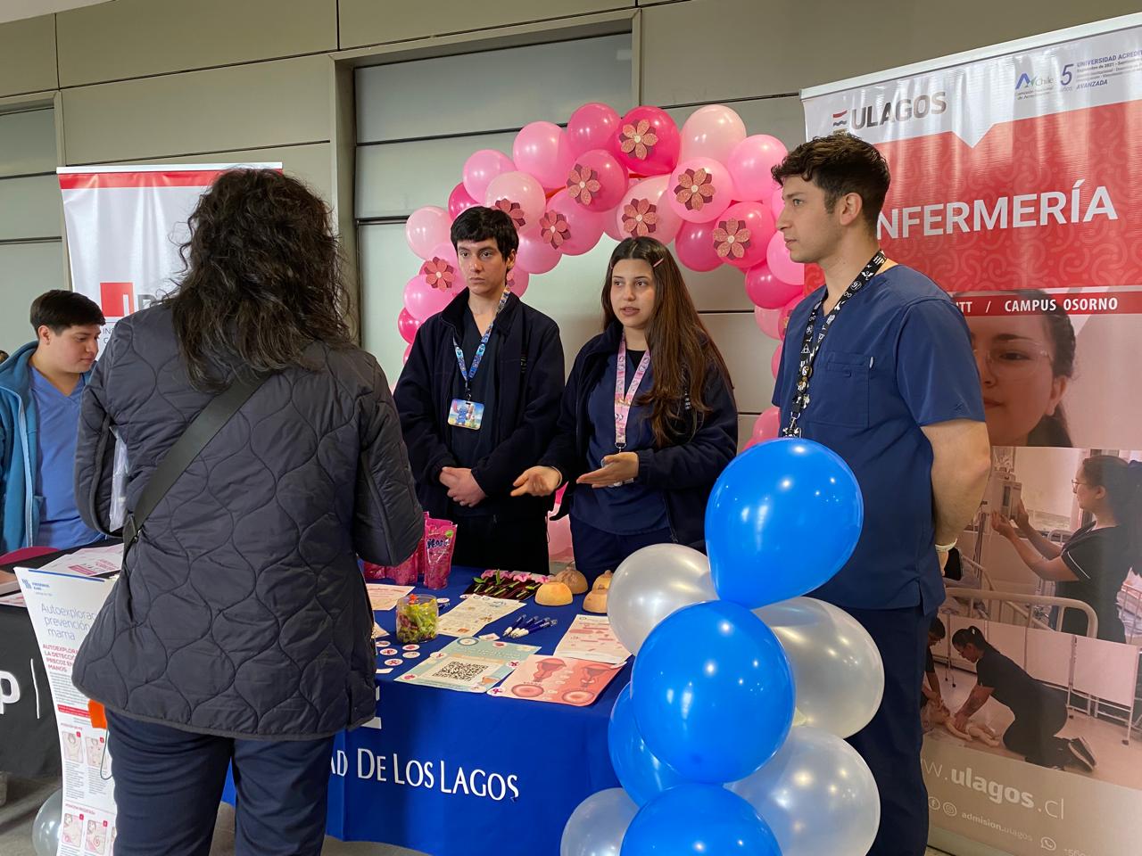 Se trató de un espacio orientado a la prevención y concientización respecto de diversos tipos de cáncer, en el que participaron docentes y estudiantes de tercer año de la carrera. El equipo puso foco en la prevención del cáncer de mama en el marco de la iniciativa Octubre Rosa, así como en el gástrico y  colorrectal, debido a la alta prevalencia de estos tipos de cáncer en la Región de Los Lagos. “La experiencia de participar en esta feria le permite a nuestro estudiantado empoderarse de su rol como futuros enfermeros y dar cabida a la prevención y promoción de una patología tan frecuente en nuestra población”, comentó María José Soto, docente de la carrera de Enfermería.