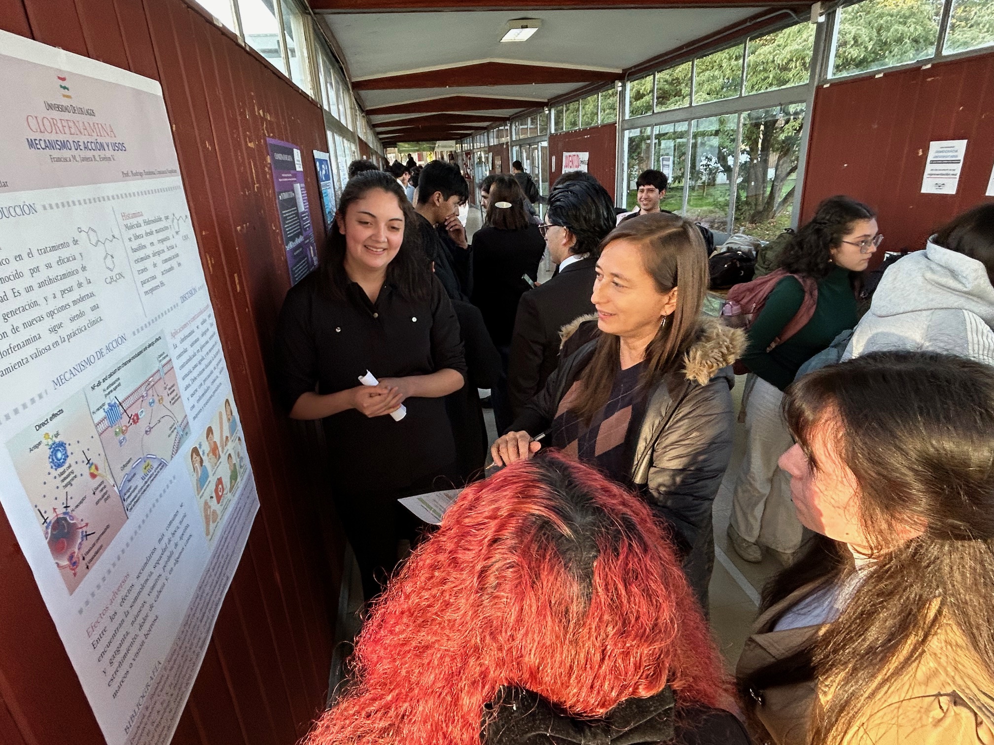 Para la Dra. Constanza Napolitano, quien también imparte la asignatura de Biología Celular y Molecular a estudiantes de primer año de la carrera de Química y Farmacia, la actividad es “un hito significativo de aprendizaje y visibilización para las y los estudiantes, ya que se realiza fuera del aula, en un lugar público de la universidad, donde cualquier miembro de la comunidad puede ver sus trabajos. Ellos deben exponer el conocimiento adquirido presentando frente a las y los evaluadores”, destacó.