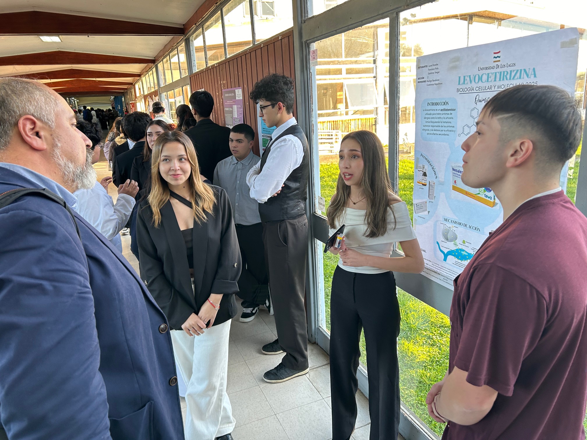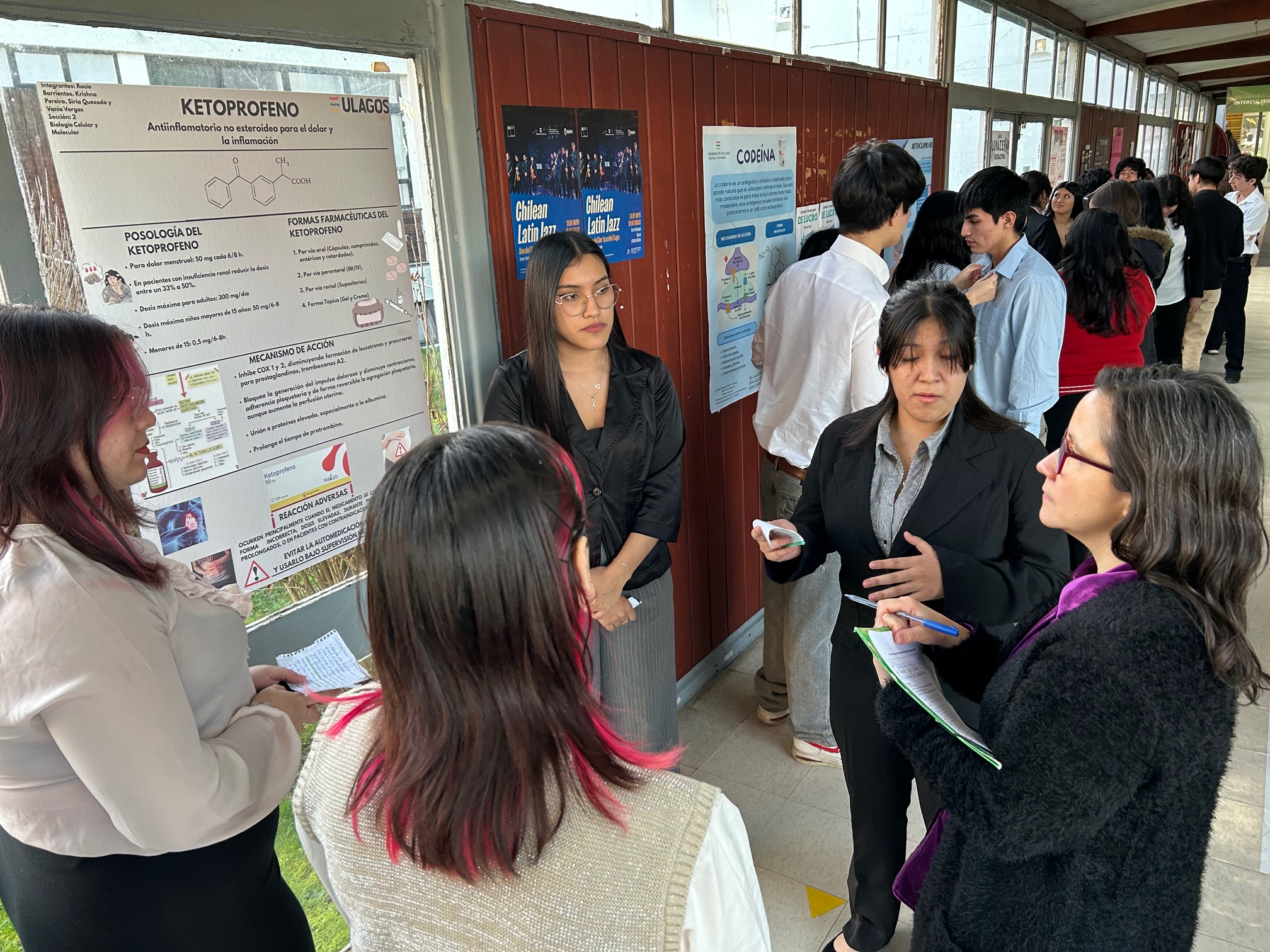 Una experiencia inolvidable de aprendizaje, aplicando el conocimiento del aula, interactuando con público y realizando divulgación científica, es la que vivieron estudiantes de primer año de la carrera de Química y Farmacia de la Universidad de Los Lagos, en la actividad de presentación de póster de sus investigaciones y que representó el trabajo final de la asignatura de Biología Celular y Molecular, en que expusieron los resultados ante público.