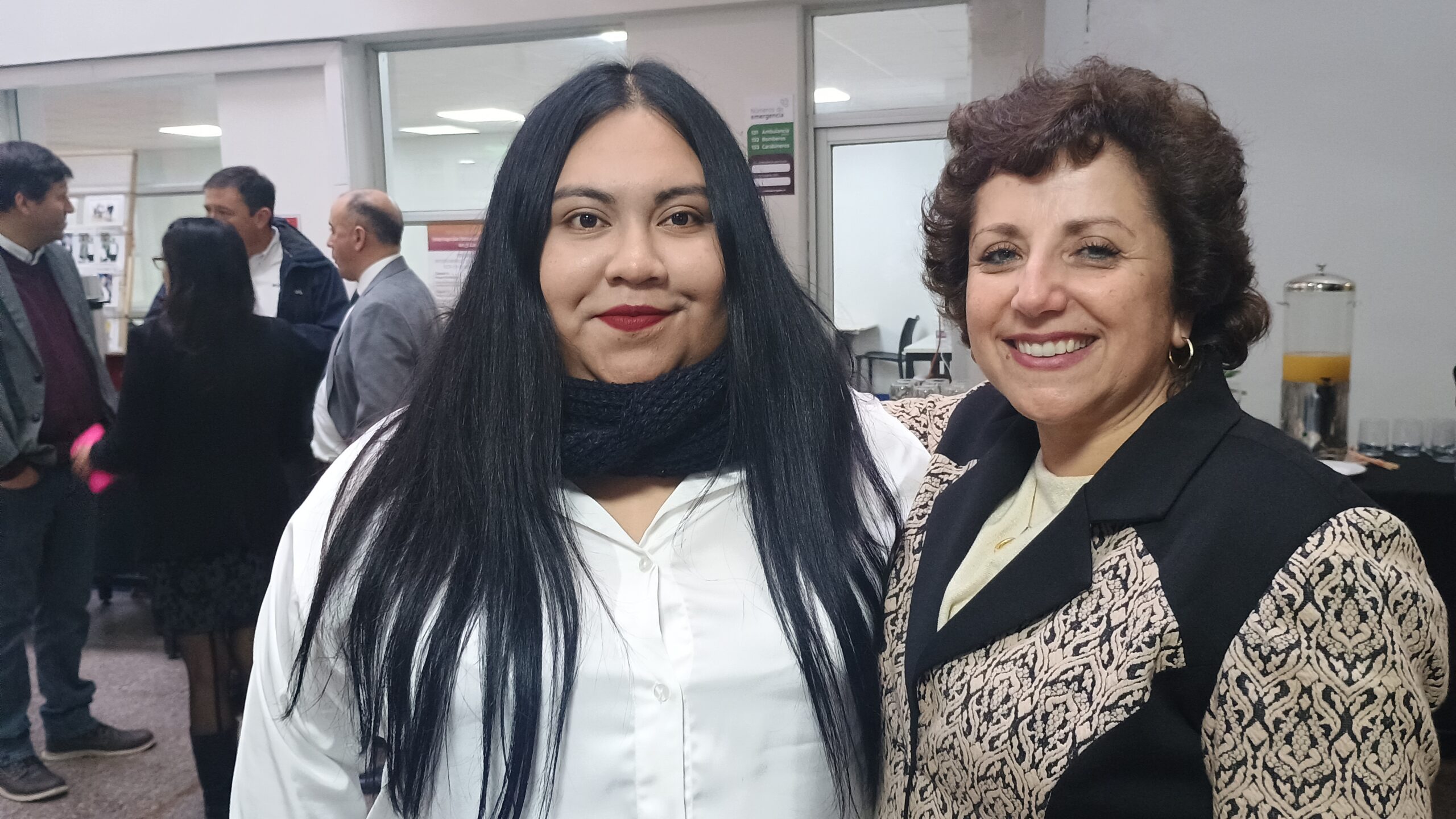 Foto 3: Muriel Montiel posa en la foto junto a Claudia Hernández, directora docente de la carrera de Técnico Universitario en Gestión y Desarrollo de Productos Alimentarios.