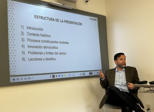 La primera exposición, titulada “Procesos constituyentes en Chile: Innovación democrática y límites del cambio”, se centró en el análisis del proceso constitucional chileno entre 2020 y 2023, incluyendo sus tres principales etapas: los diálogos iniciados en el segundo gobierno de Michelle Bachelet, la Convención Constituyente tras el estallido social, y el nuevo proceso posterior al rechazo del primer texto constitucional.