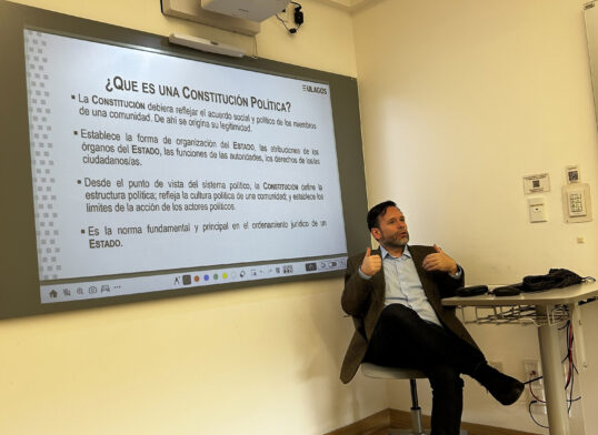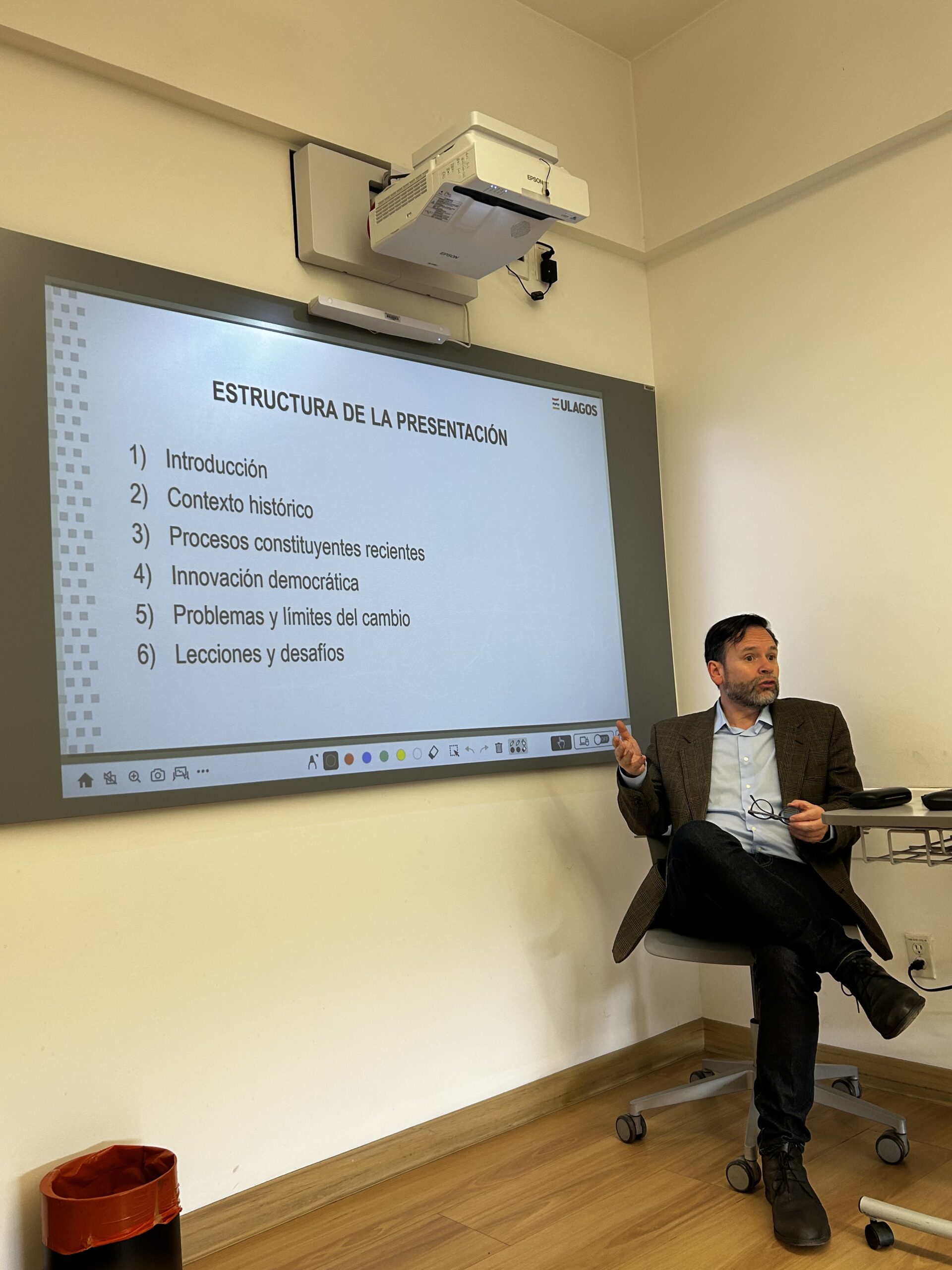 La presentación se realizó en el marco del curso de Sistemas Electorales y Partidos Políticos, donde se discutieron las implicancias políticas e institucionales del fallido proceso constituyente chileno. “Se les explicó tanto el contexto, los procesos, las implicaciones, los problemas y los desafíos que tuvieron los tres momentos constituyentes”, añadió.