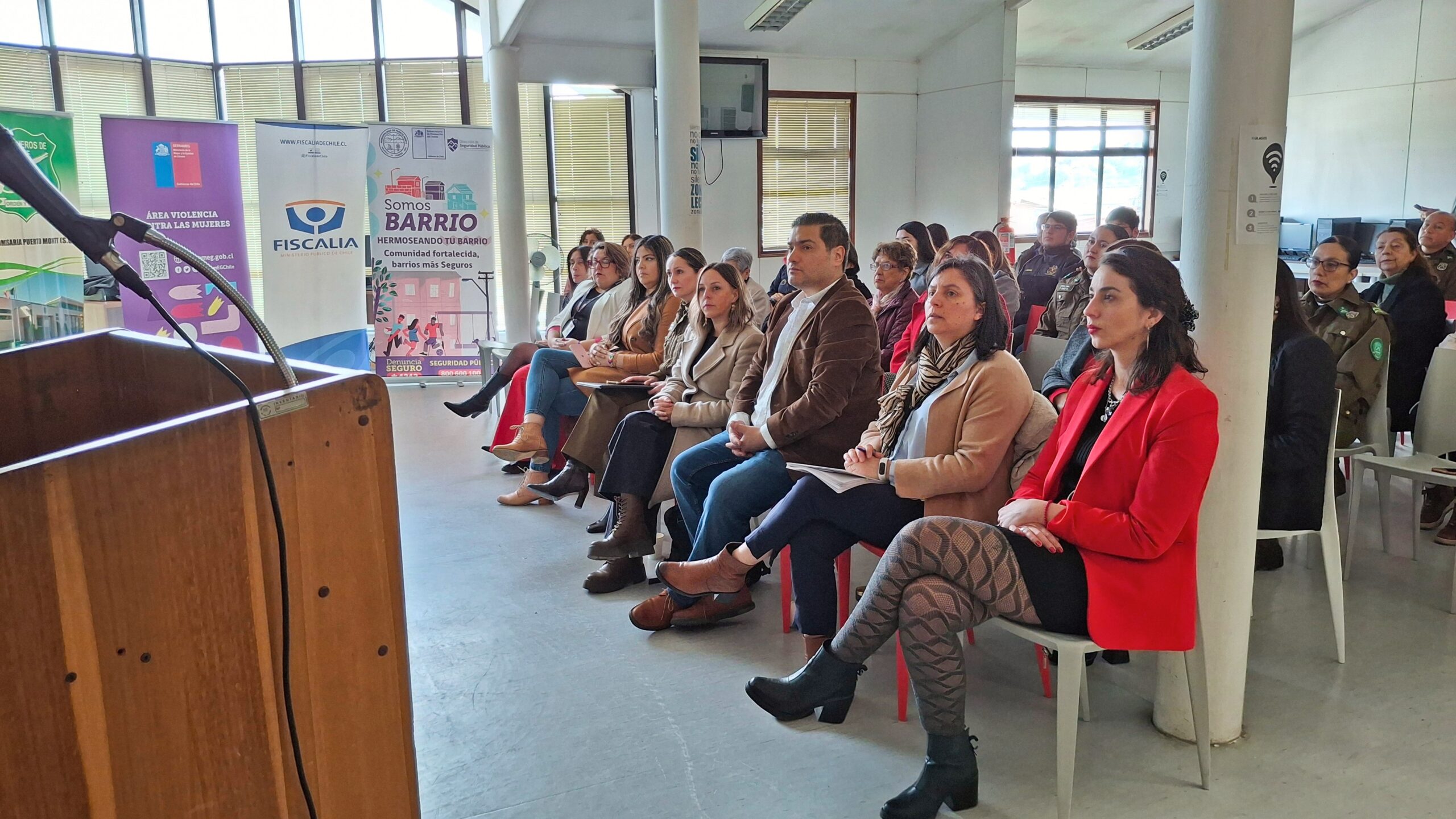 Esta actividad además contó con la presencia de la directora del SERNAMEG María Francisca Pérez, Soledad Oyarzo, gestora del programa Somos Barrio de la Municipalidad de Puerto Montt y la seremi de Seguridad Pública Patricia Rada. “Desde la Seremi estamos muy conformes de poder generar vínculos con espacios académicos, donde además de ser lugares de desarrollo de ideas, también son espacios de formación de ciudadanas y ciudadanos, que están preocupados del rol que cumplen las personas en la prevención de situaciones de violencia intrafamiliar o violencia de género o violencia contra la infancia y poder reaccionar. Que conozcan los conductos que el Estado ha puesto a disposición para hacer las denuncias, como el *4242, que es un programa para hacer denuncias de manera gratuita, segura y completamente anónima”, señaló la autoridad.