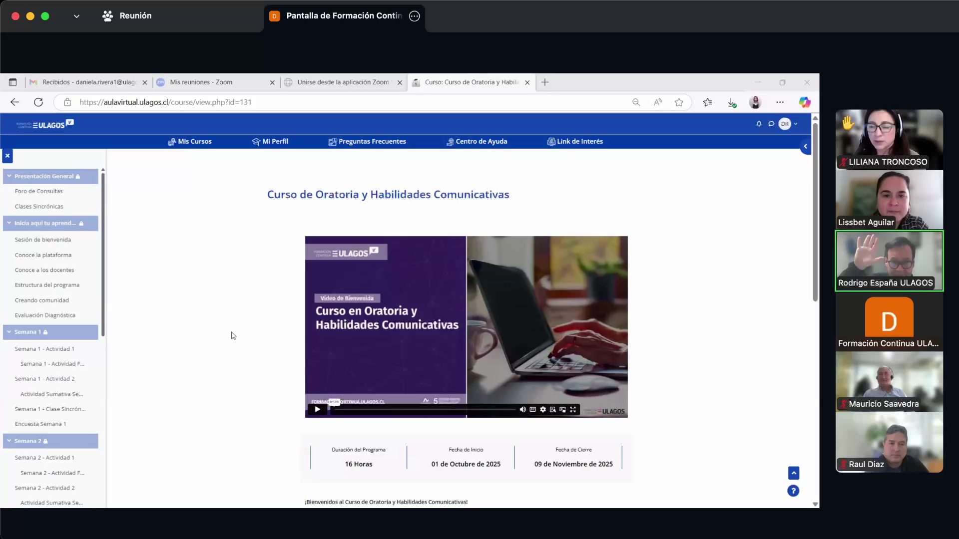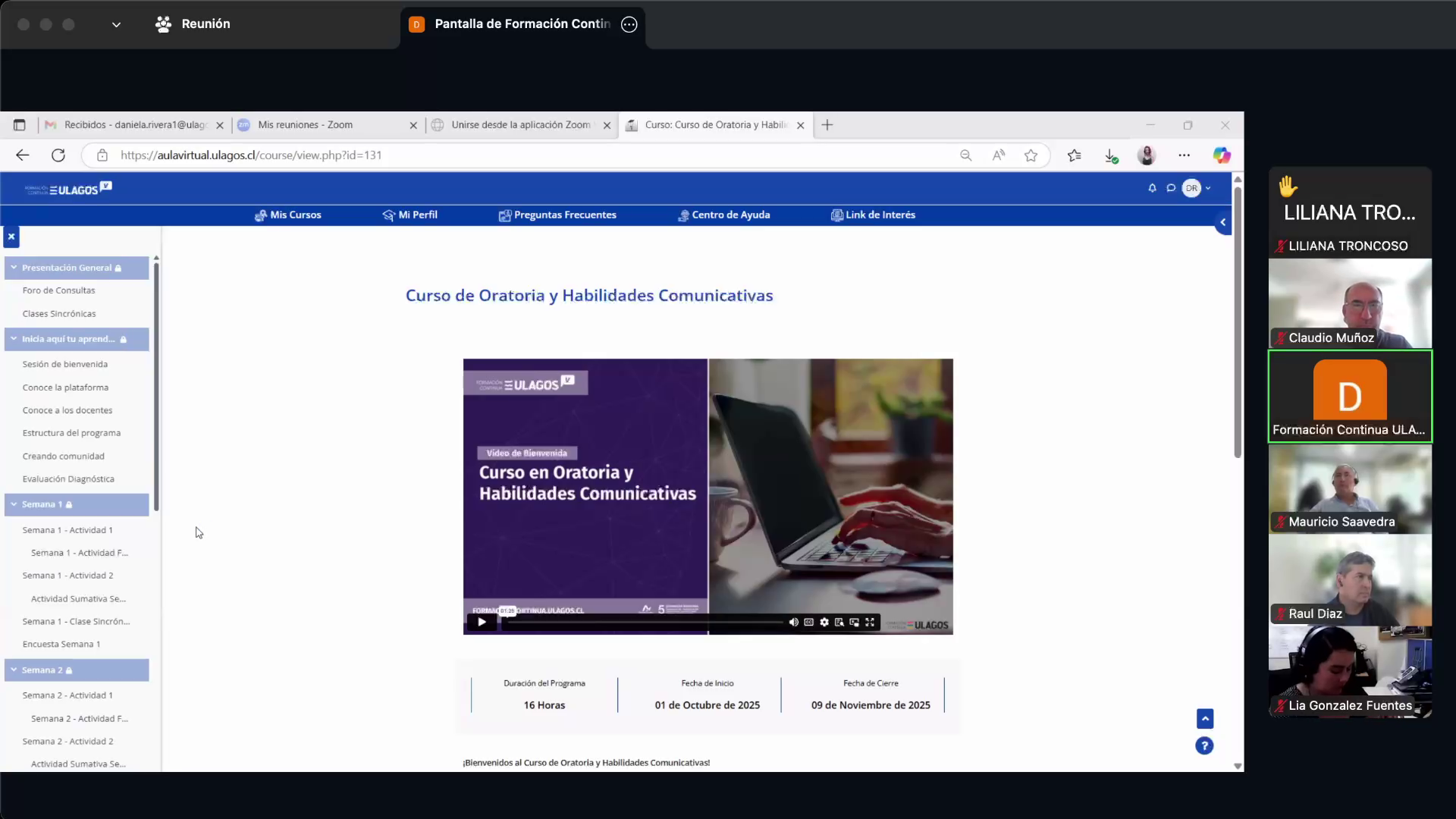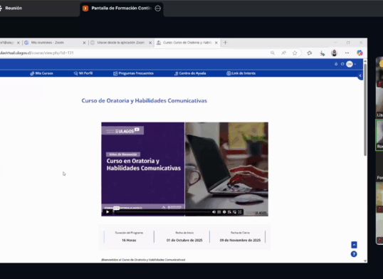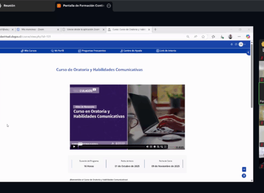 Con una cálida sesión de bienvenida realizada el miércoles 1 de octubre vía Zoom, se dio inicio al curso Oratoria y Habilidades Comunicativas, impartido por el programa de Formación Continua de la Sede Santiago de la Universidad de Los Lagos en modalidad e-learning, dirigido exclusivamente a funcionarios y funcionarias del Servicio Nacional de Capacitación y Empleo (SENCE).