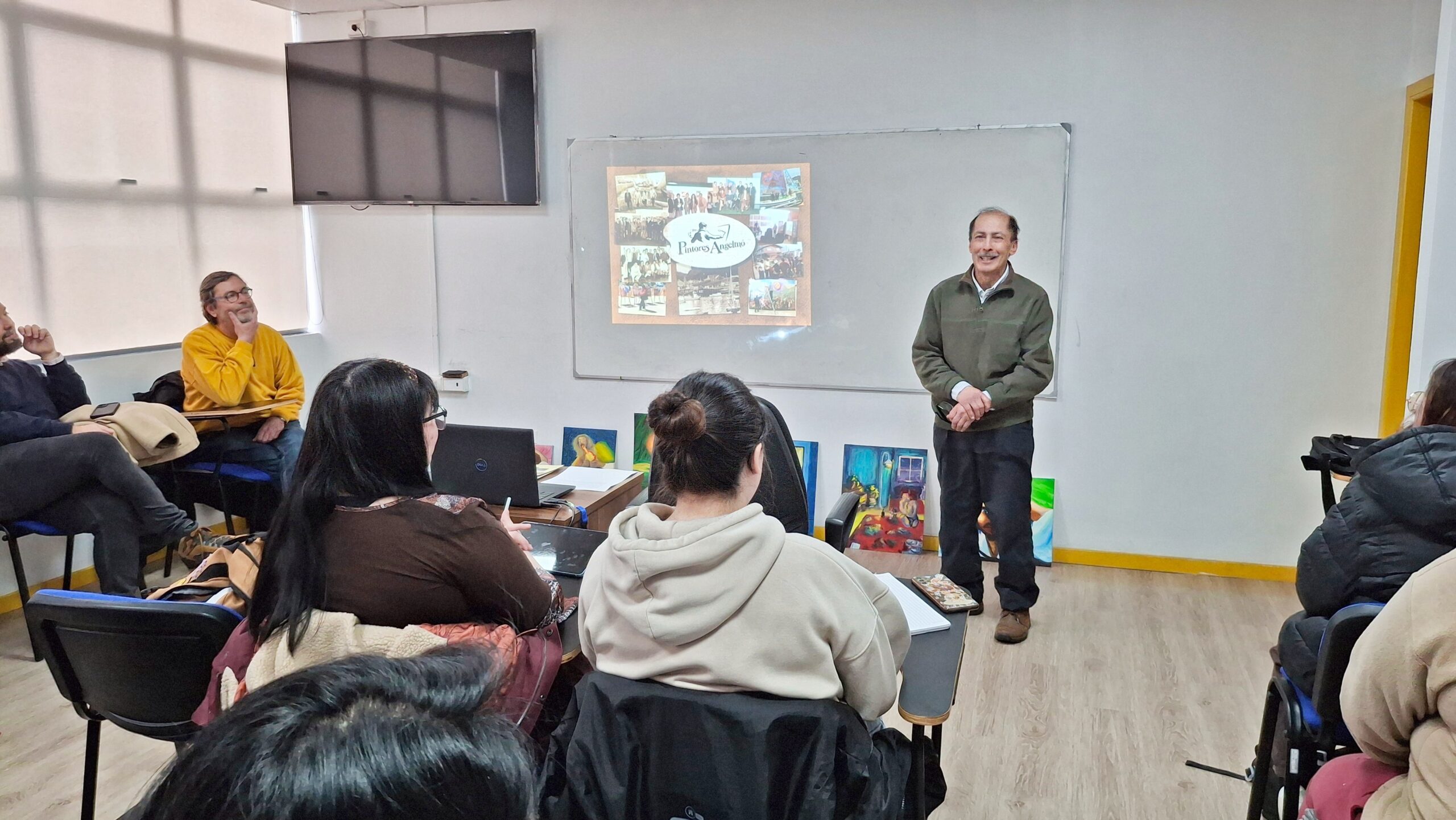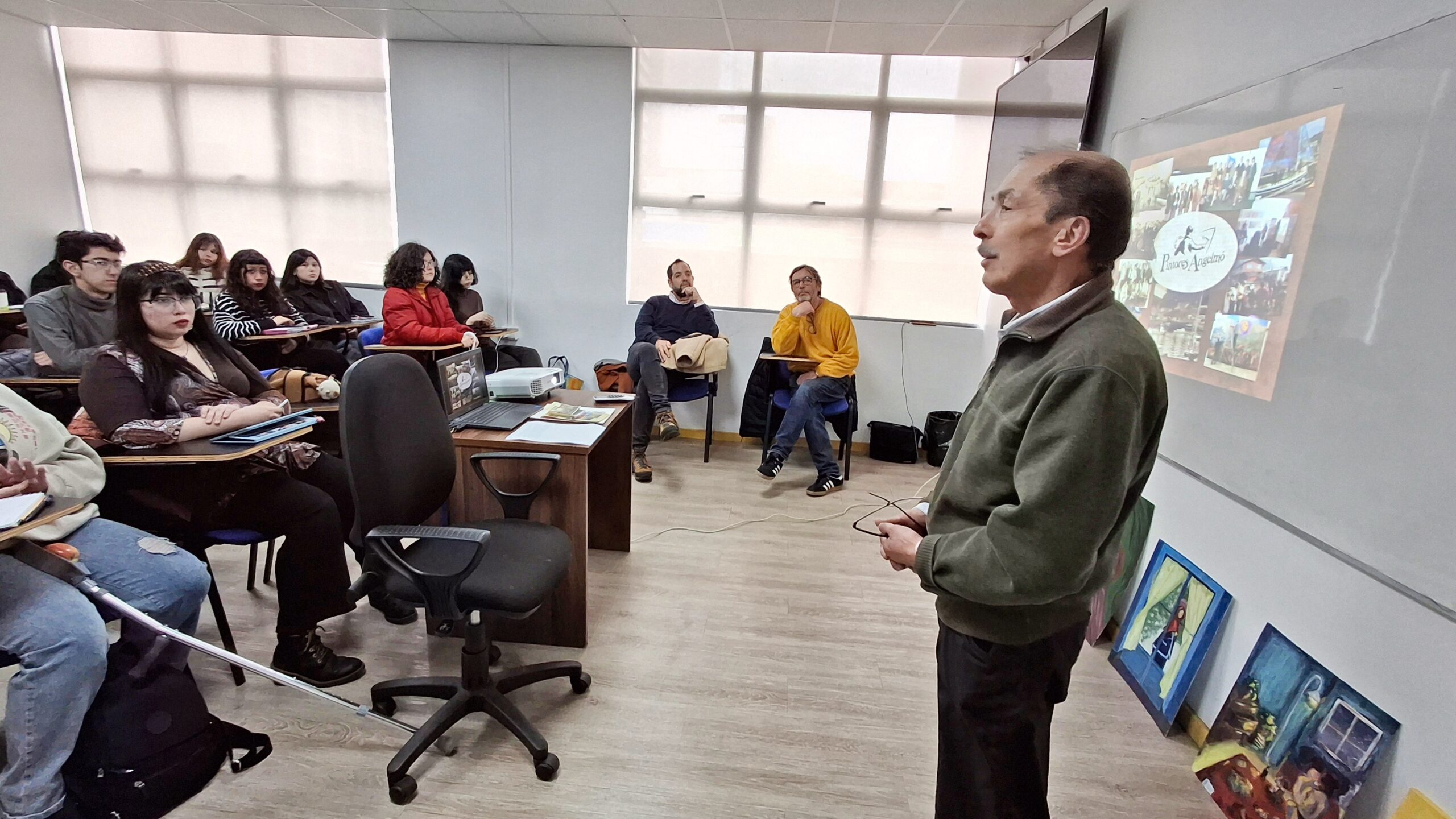 Buscando relevar la importancia de conocer la historia local, estudiantes de Pedagogía en Artes Visuales, recibieron la visita de Ernesto Mancilla, presidente de la Asociación de Pintores de Angelmó, agrupación que existe hace más de 50 años en Puerto Montt.