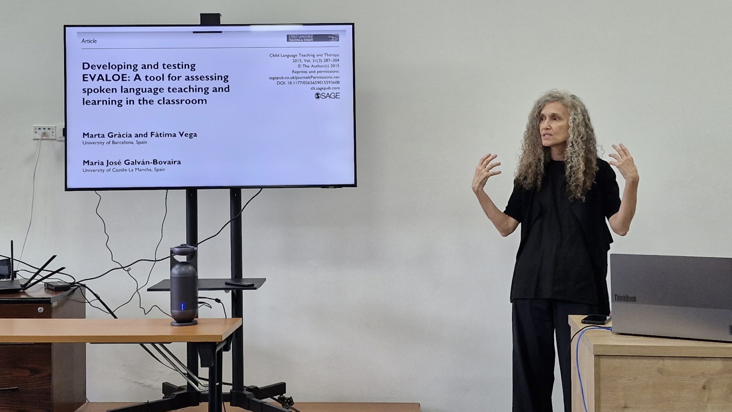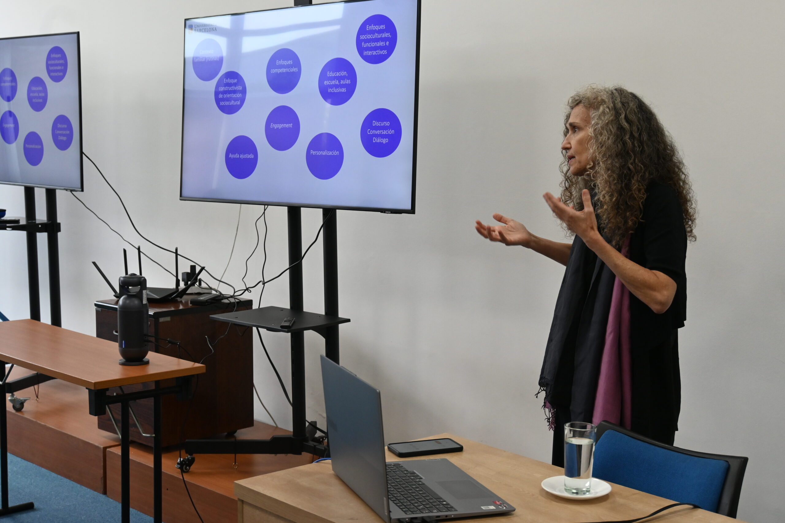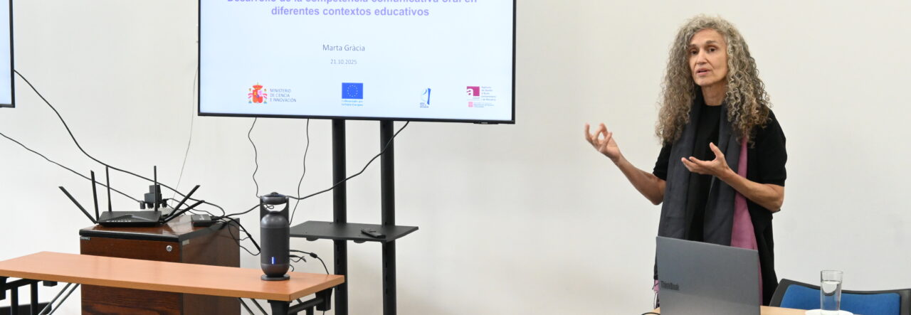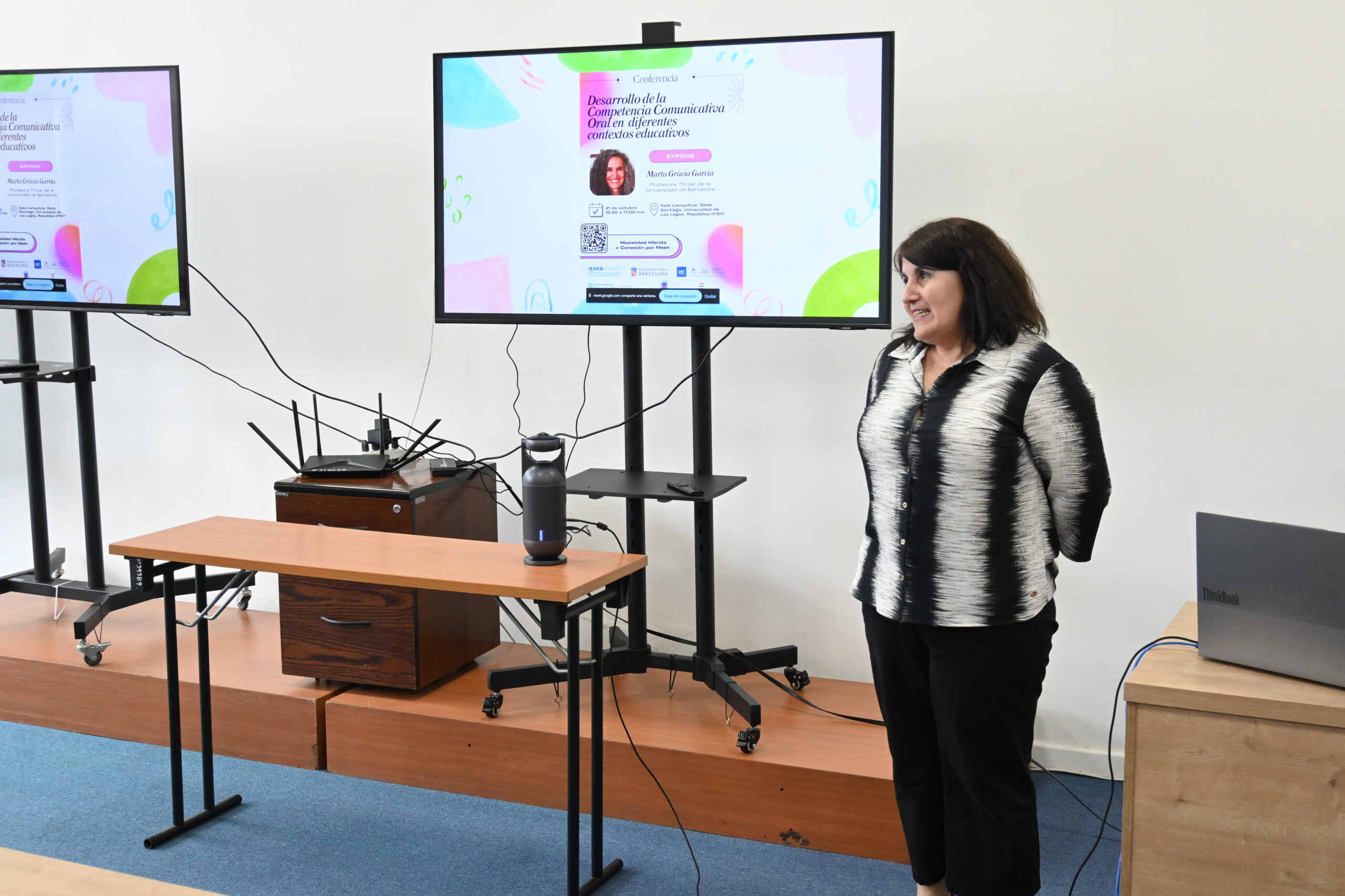 En su exposición, Marta Gràcia García abordó los desafíos y estrategias para promover el desarrollo de la competencia comunicativa oral en distintos niveles educativos, desde la infancia hasta la educación superior. La académica subrayó que el lenguaje es una herramienta central para la construcción del conocimiento y la convivencia.