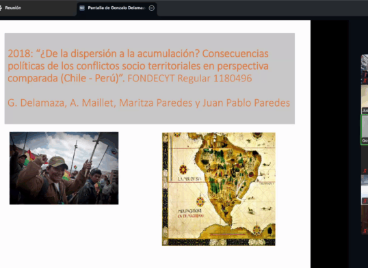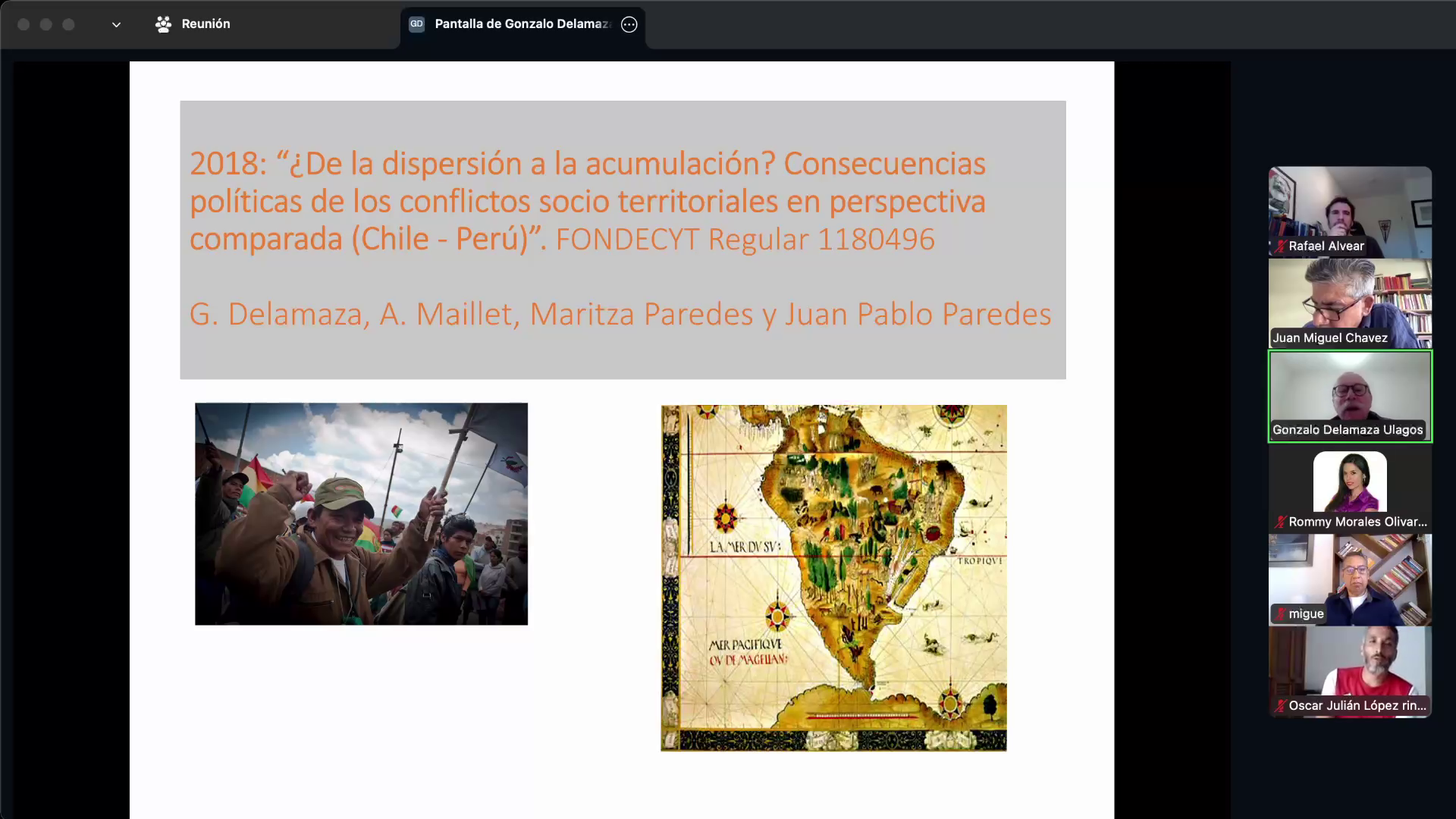 El segundo proyecto, realizado junto a Maritza Paredes y Juan Pablo Paredes, tenía un enfoque comparativo entre Chile y Perú, aunque en esta ocasión el Dr. Delamaza se centró en los resultados del estudio realizado en Chile, particularmente en el periodo entre 2008 y 2020. En este sentido, el investigador destacó el fenómeno de los conflictos socioterritoriales en la región andina latinoamericana, una zona marcada por el auge de las actividades extractivas, aunque señaló que la extracción no es el único factor detrás de estos conflictos.