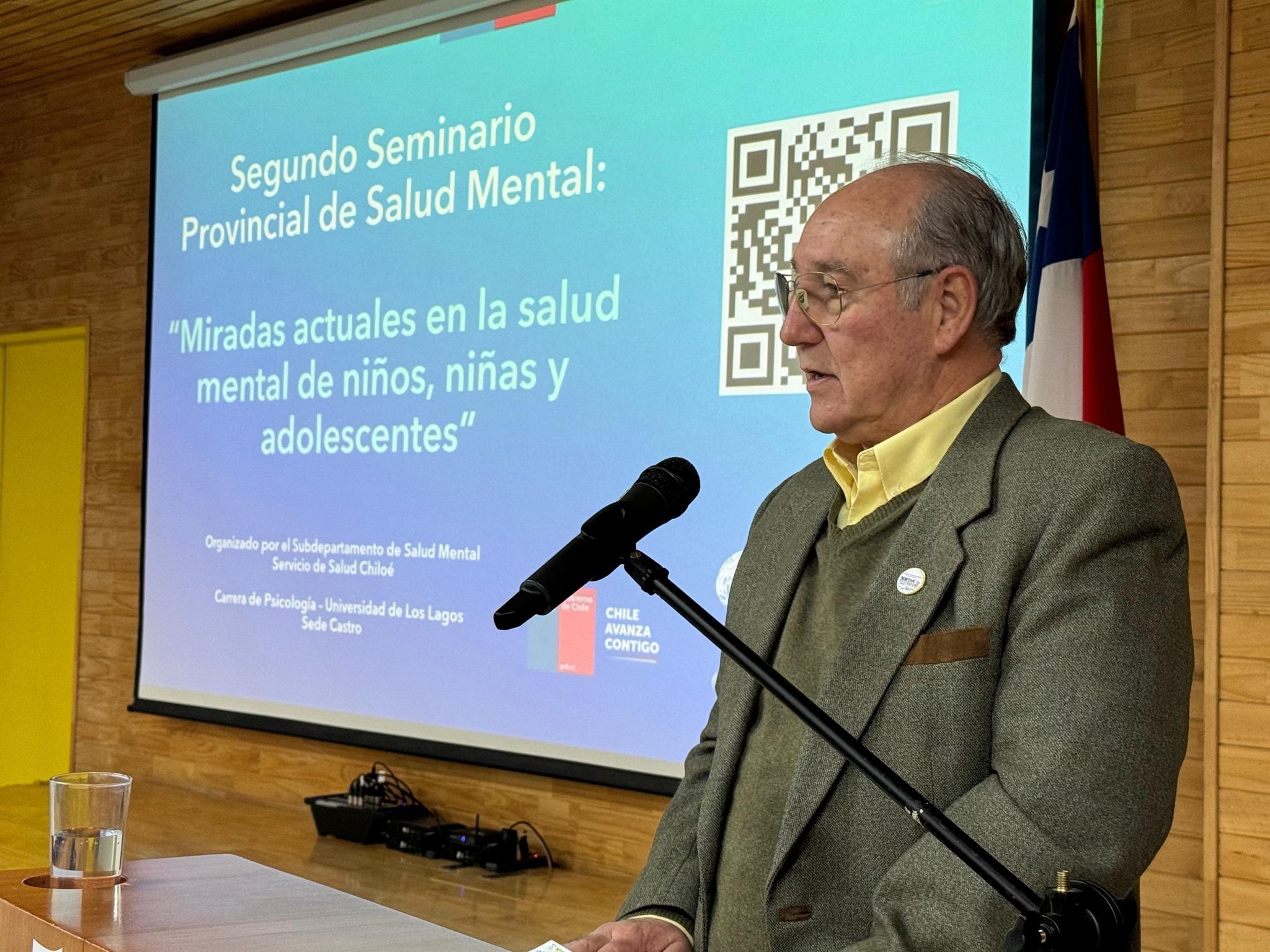 En el auditorio de la ULagos y con una amplia participación de la comunidad local, inició el seminario con las palabras de bienvenida del Director (s) del Servicio de Salud Chiloé, Eric Gutiérrez, quien subrayó la importancia de visibilizar los desafíos que enfrentan las nuevas generaciones en materia de salud mental: