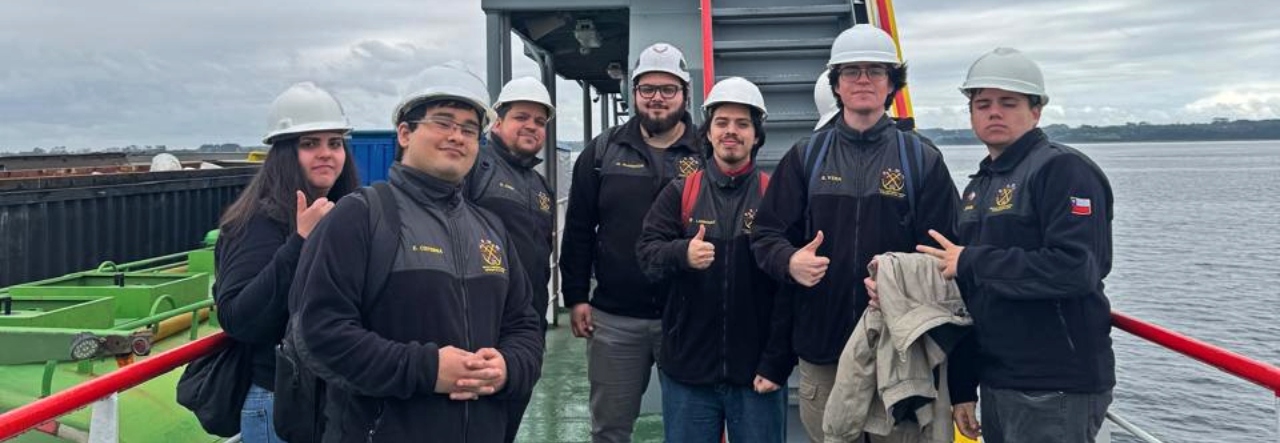 Estudiantes de cuarto semestre de la carrera de Técnico Universitario en Transporte Marítimo Costero y de segundo semestre de Técnico Universitario en Electromecánica Marítima, fueron las y los protagonistas de la visita a los transbordadores de la Naviera Cruz del Sur.