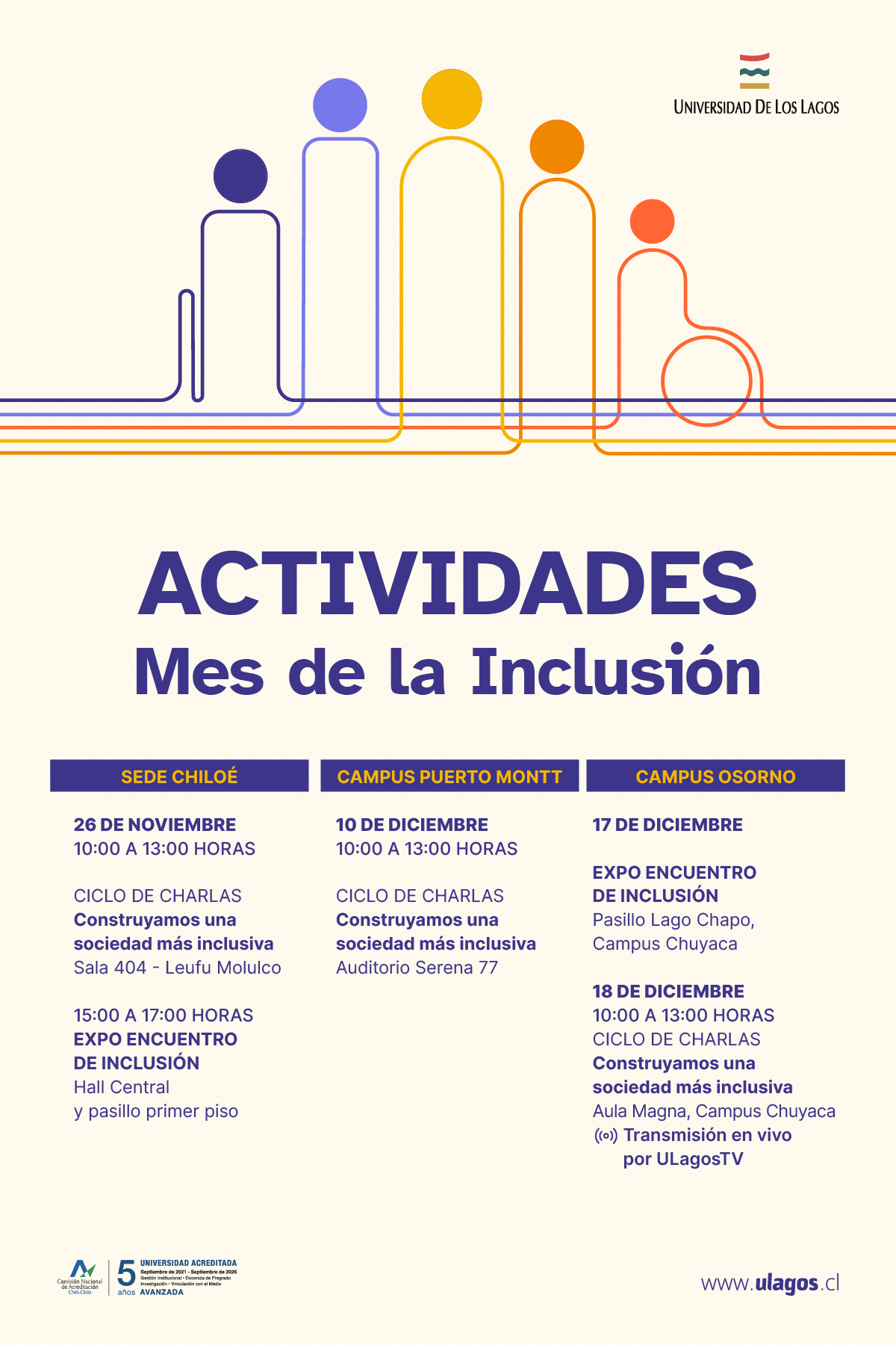 Según informó, la psicóloga y encargada del Área de Inclusión Laboral de la ULagos, Ivania Escudero, cada año, el Área de Inclusión Laboral y el Programa de Inclusión de Estudiantes con Discapacidad, en el mes de diciembre, organizan actividades en conmemoración de la inclusión de personas en situación de discapacidad, neurodivergencias y comunidad Sorda, entre otros grupos.