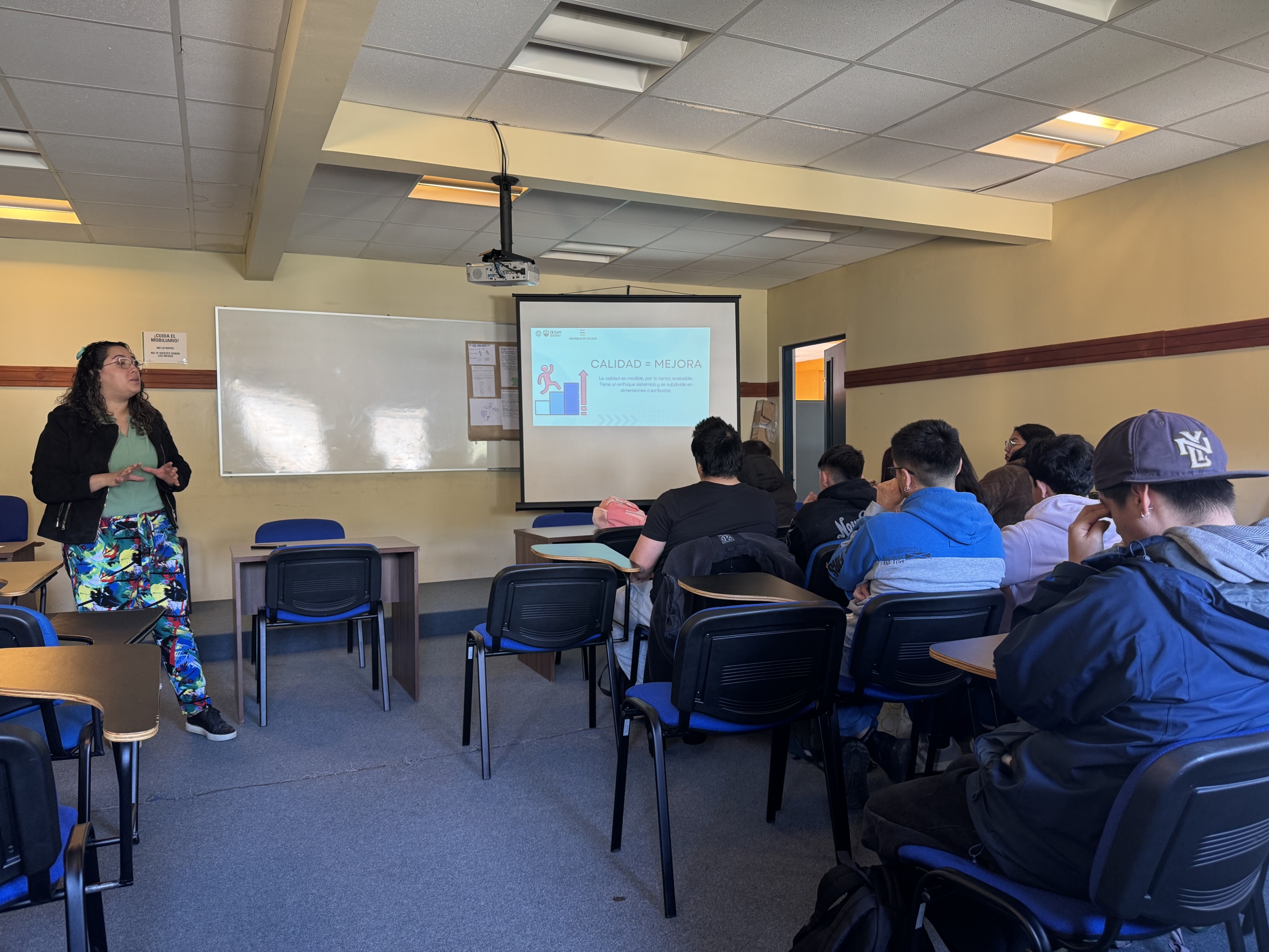 La actividad se desarrolló en el Campus Puerto Montt y estuvo a cargo de la kinesióloga Natalia Gajardo, profesional de la Dirección de Salud Municipal (DESAM), quien compartió conocimientos  sobre prácticas seguras, protocolos asistenciales y criterios fundamentales para una atención centrada en el paciente. Asimismo, se abordaron temas clave como la normativa de calidad y el proceso de acreditación para prestadores institucionales de salud; los ámbitos y características aplicables a la kinesiología, así como la prevención, detección, análisis y elaboración de planes de mejora frente a la ocurrencia de eventos adversos asociados a la atención de salud en esta disciplina. “Aprender sobre calidad y seguridad asistencial en kinesiología es esencial para garantizar una atención segura, prevenir eventos adversos y formar profesionales comprometidos con la excelencia y el bienestar del paciente», comentó Natalia Gajardo.