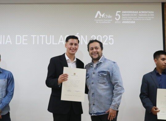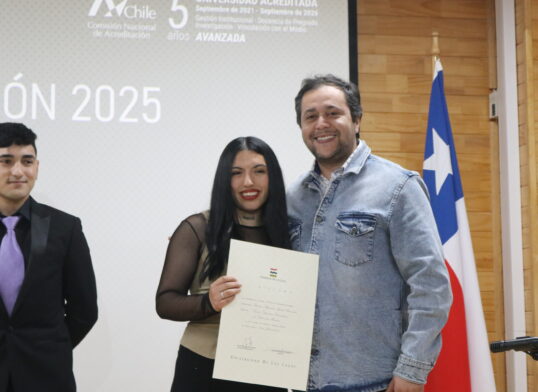 Entre los testimonios de los nuevos titulados, Marco Quezada Villacura, de la carrera Técnico Universitario en Construcción Vespertino, valoró el esfuerzo compartido con su familia y compañeros: