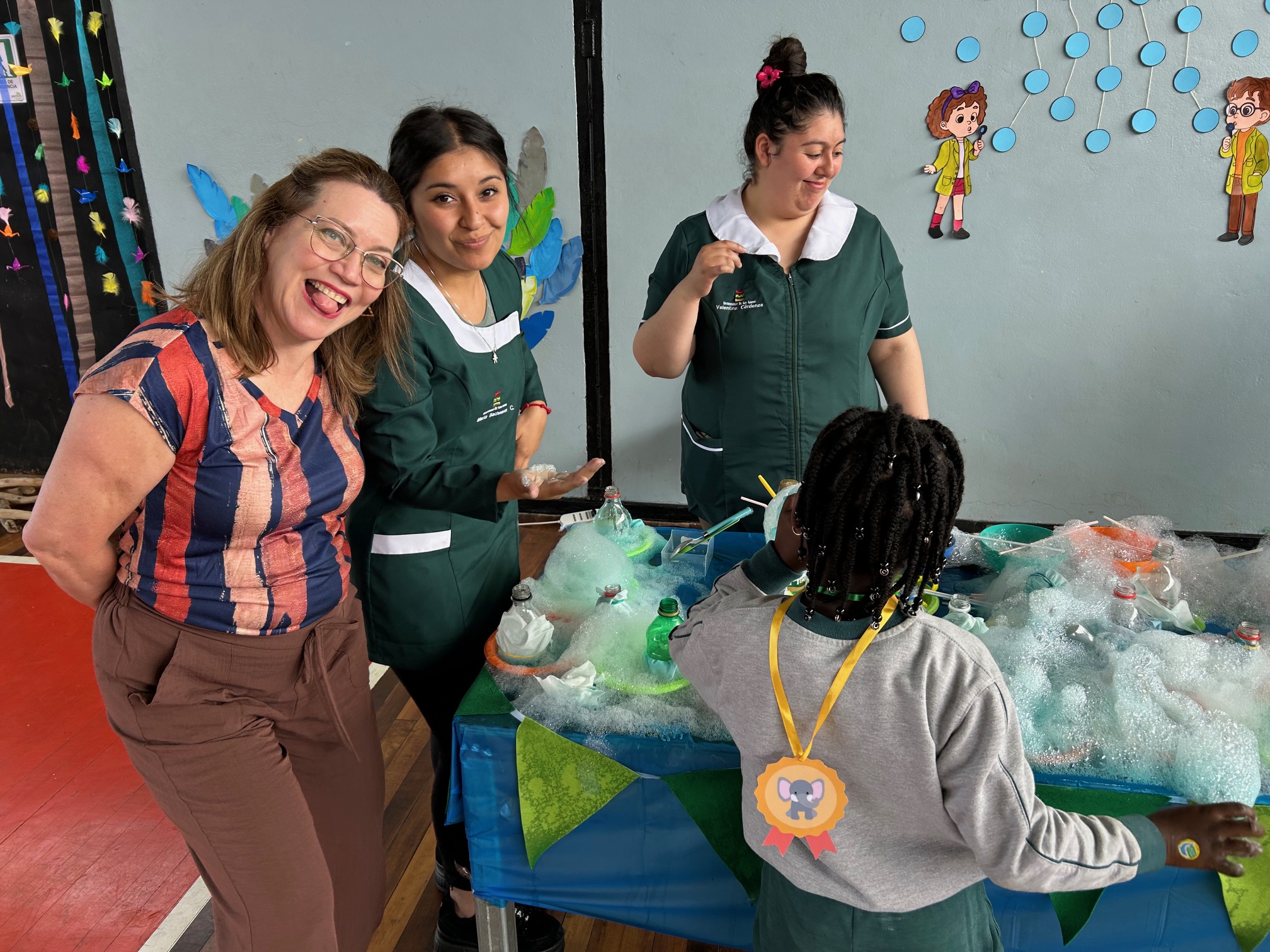 Carolina Saldaña, académica y coordinadora de Prácticas de la carrera de Prosecución de Estudios en Educación Parvularia, manifestó que la actividad denominada Interacciones Pedagógicas en Primera Infancia, es un espacio formativo en que las estudiantes de todos los semestres “generan oportunidades para que niños y niñas participen e interactúen en diversas experiencias de aprendizaje. Estas propuestas favorecen el desarrollo de múltiples áreas, tales como ciencias, psicomotricidad infantil, neuroplasticidad, curiosidad, juego y ludicidad, entre otras”, destacó.