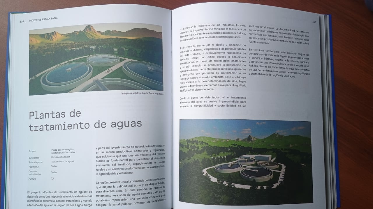 El portafolio propone proyectos a escala basal, como el Centro Tecnológico de Economía Circular, una red de colectores de aguas lluvias, plantas de tratamiento de aguas y el mejoramiento de bordes costeros, entre otros. A escala social, se propone un Archivo Regional Los Lagos, el Museo Vivo de Ciencia y Biodiversidad, hospitales de mediana complejidad, polideportivos comunales y un centro oncológico regional entre otros. A escala productiva, se propone un aeropuerto de Chaitén, el terminal de Castro, un puerto de cruceros en Lechagua, puentes menores, calles y caminos regionales, un corredor bioceánico y ascensores y teleféricos para Puerto Montt.