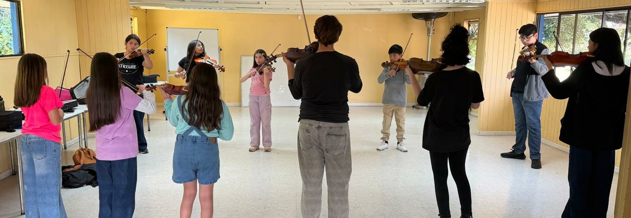 La metodología del campamento incluyó clases grupales de violín, laboratorios de repertorio, ensayos tutti, rítmica y activación corporal, además de talleres de manejo de la ansiedad escénica y una charla de luthería orientada al cuidado y mantención del instrumento. Todo ello fue guiado por un equipo profesional interdisciplinario, conformado por docentes de violín, especialistas en preparación corporal, un psicólogo y un luthier.