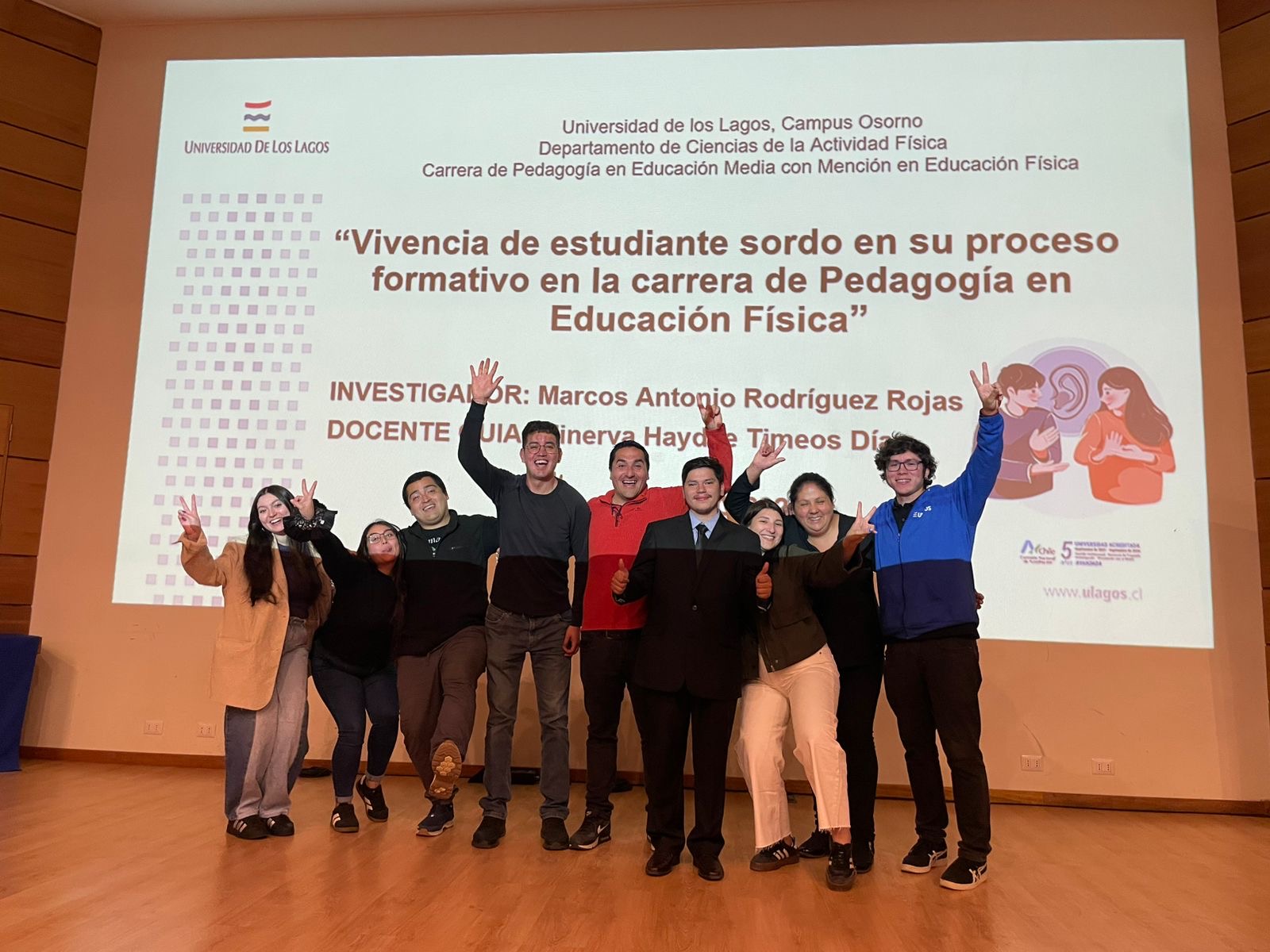 En tanto, Cristofer Cárcamo, Encargado de Inclusión de la Universidad de los Lagos señaló estar muy contento con el proceso formativo de Marcos Rodríguez “fue un proceso desafiante, ya que ha sido el primer estudiante sordo egresado de la carrera de educación física, teniendo particularidades que fuimos trabajando de manera muy colaborativa con el equipo de la carrera y con el equipo de acceso equidad y permanencia, tomando en cuenta cuales eran los ajustes razonables que requería el proceso y siendo un aprendizaje para todos los que estuvimos involucrados en esta instancia que ya culminó, debido a que oficialmente Marcos ya está egresado de la carrera marcando un hito institucional importante en lo que son los procesos de inclusión dentro de la institución”, resaltó.