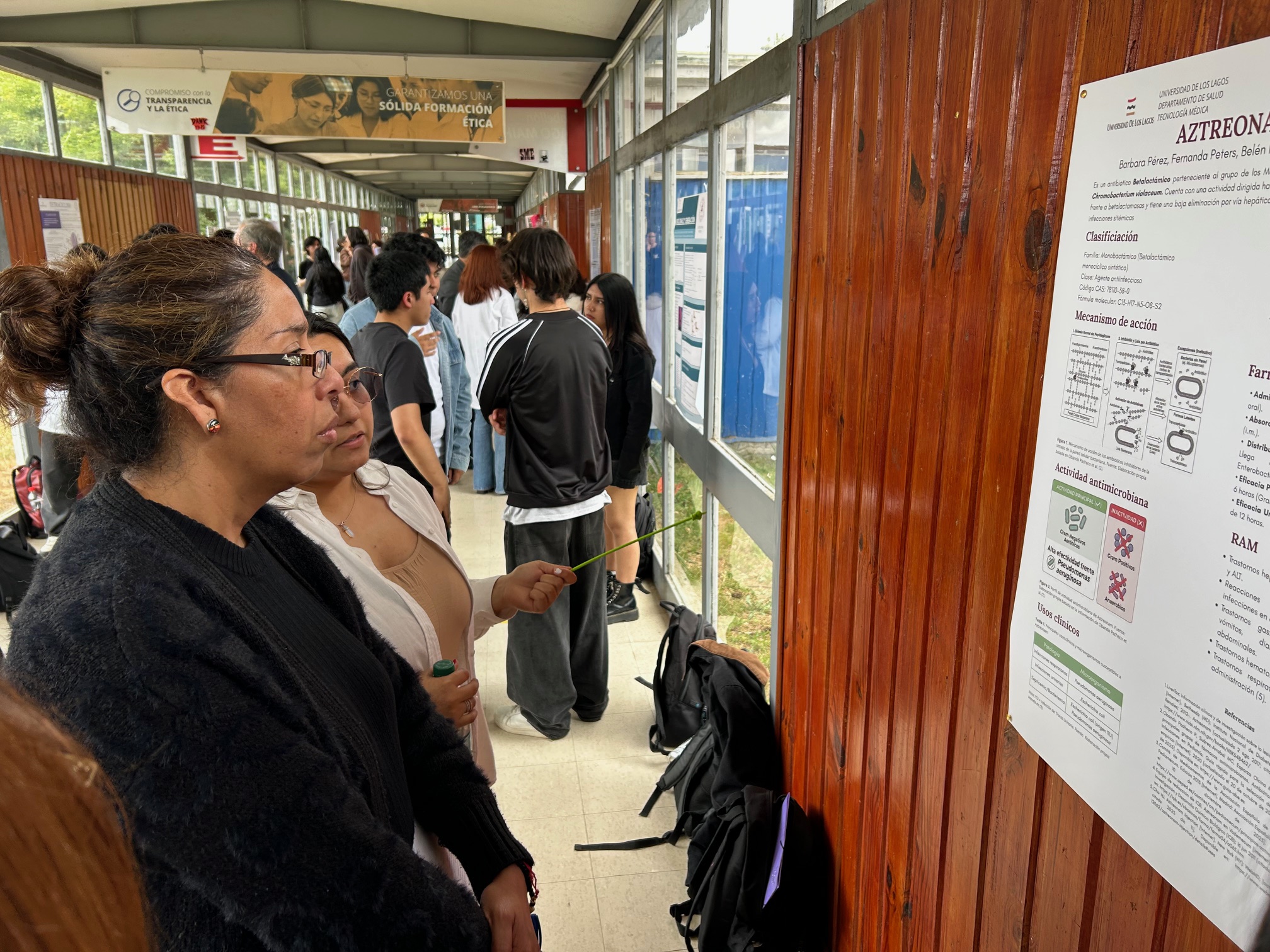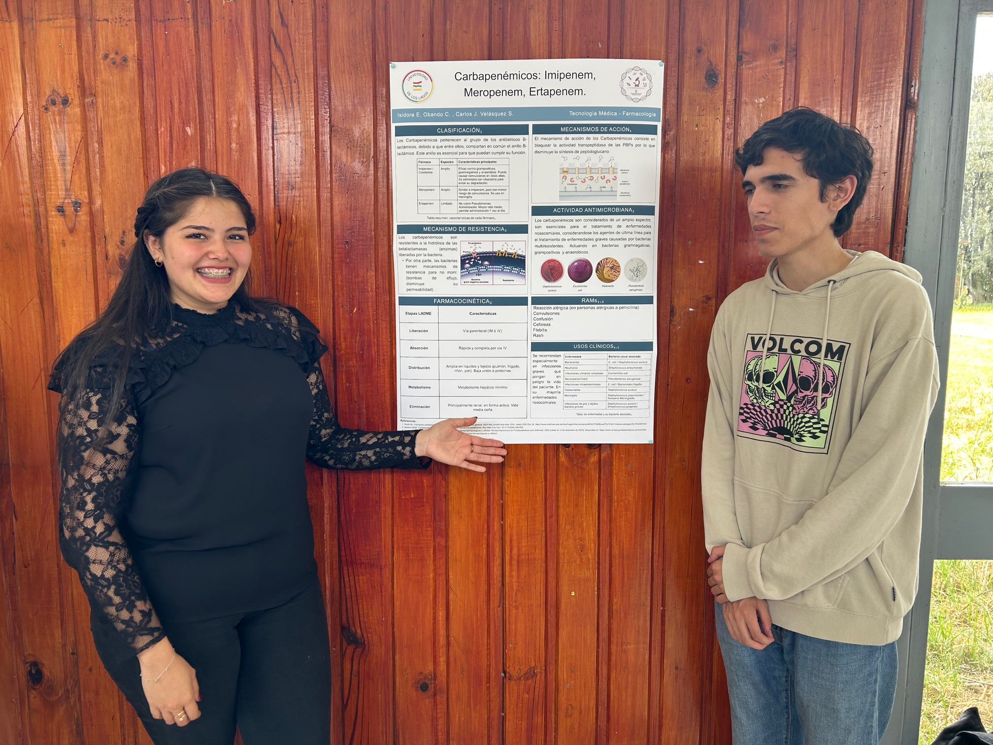 Con el objetivo de fortalecer los aprendizajes disciplinares y contribuir a la formación integral de las y los estudiantes, promoviendo además el desarrollo de habilidades comunicativas y el pensamiento crítico, se realizó la actividad evaluativa final de la asignatura de Farmacología, vinculada a la presentación de Póster sobre antimicrobianos, que desarrollaron estudiantes de la carrera de Tecnología Médica de la ULagos.