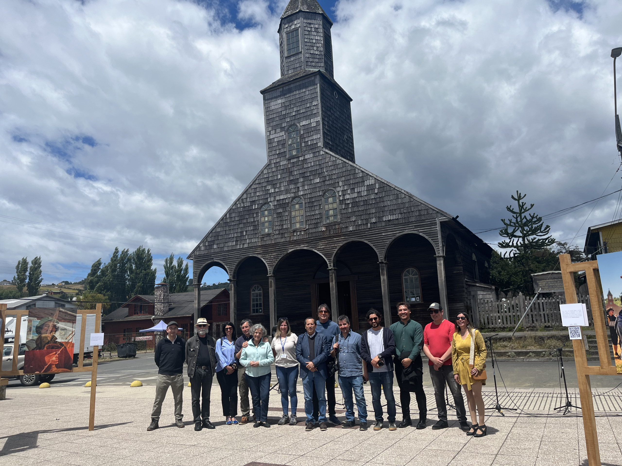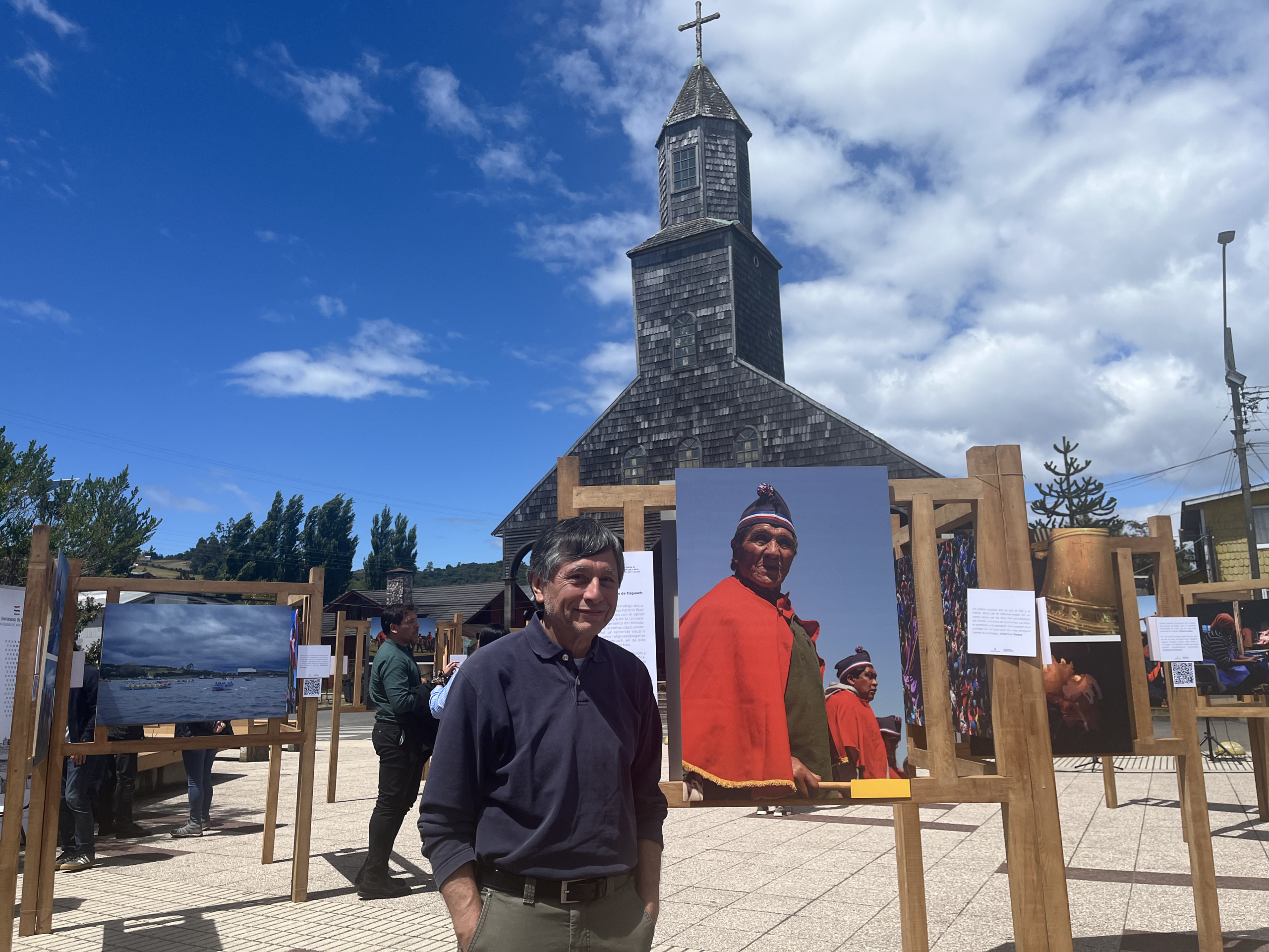 “Es la primera vez que tengo una exposición de este tipo acá, y hacerlo con este fondo, con el torreón de la iglesia, una de las más interesantes de Chiloé, es algo muy especial. Aquí la gente se ve a sí misma, ve su historia, y eso no había pasado antes con una muestra así”, señaló.