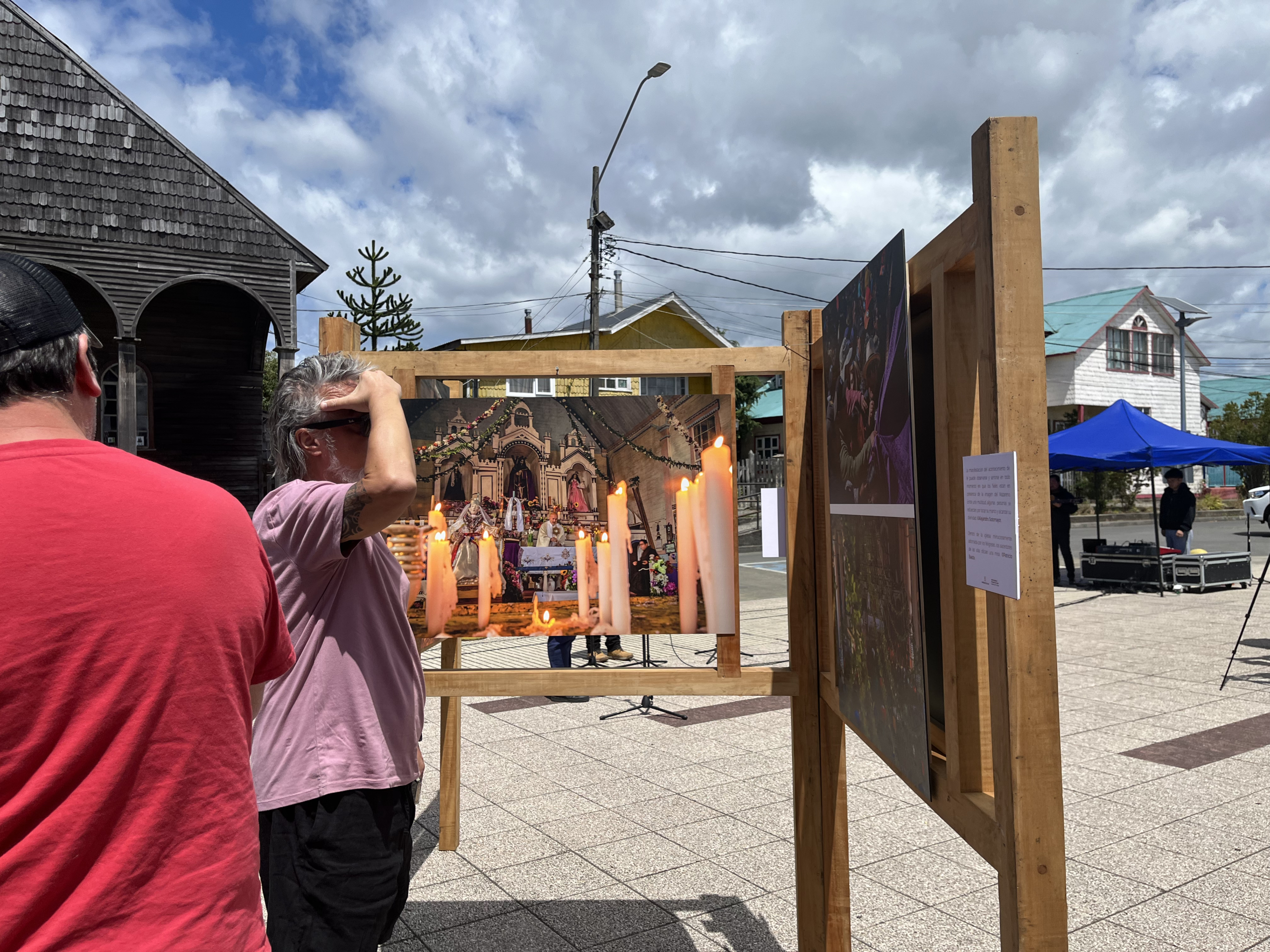 La muestra documental de los fotógrafos Patricio Baeza y Alejandro Sotomayor fue inaugurada frente a la iglesia patrimonial de Achao, en la comuna de Quinchao, como una experiencia visual y sonora que rescata los rostros, gestos y prácticas de fe de las comunidades chilotas, gracias a una alianza con la Universidad de Los Lagos.