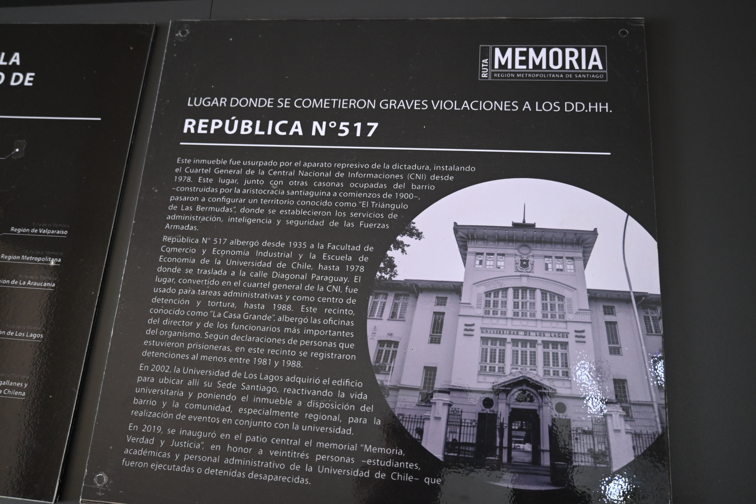 Según Troncoso, la elección del edificio de República 517 no es casual. “La Sede de la Universidad de Los Lagos aquí de Avenida República 517 quedó como un lugar sumamente relevante, que además pertenece a un sistema que se conocía como el Triángulo de Las Bermudas, por lo que esperamos contribuir a poder contar lo que ocurrió acá”, afirmó, en referencia al conjunto de inmuebles del Barrio República que fueron utilizados por los aparatos de inteligencia y represión de la dictadura.