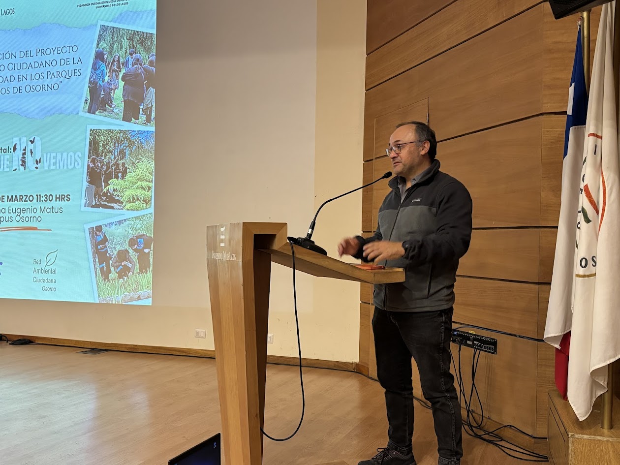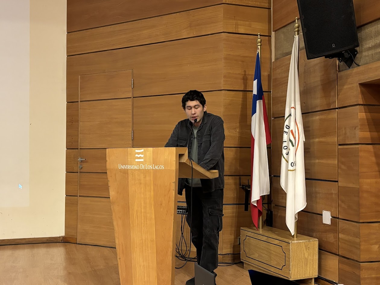“La vida que no vemos”, fue el micro documental exhibido en el aula Magna Eugenio Matus Romo de la Universidad de Los Lagos, realizado por el estudiante de quinto año de la carrera de Pedagogía en Historia y Geografía de la casa de estudios, Alejandro Coronado, quien presentó el trabajo desarrollado en el proyecto “Monitoreo Ciudadano de la Biodiversidad en los Parques Urbanos de Osorno (2025)”.