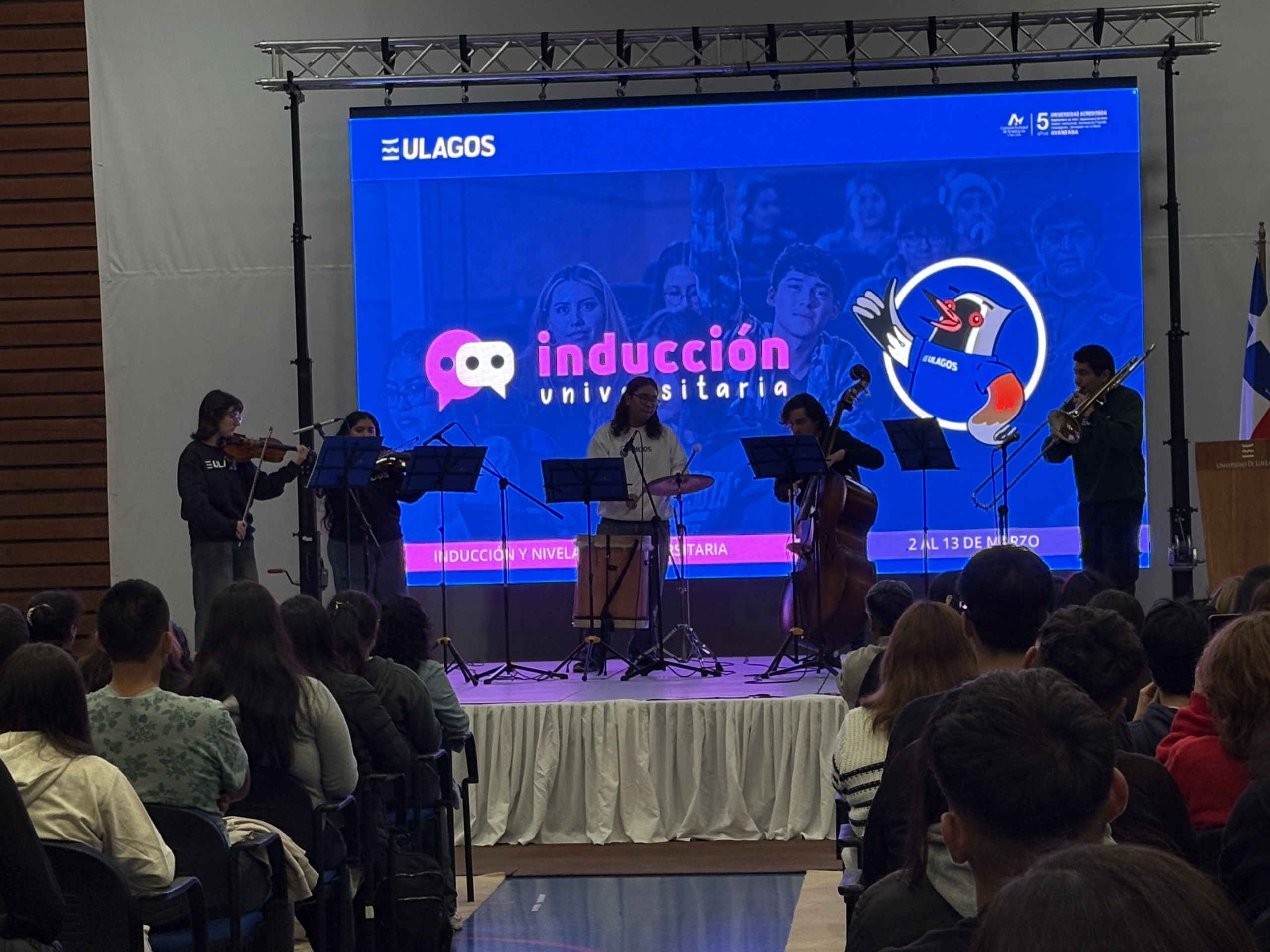 La Academia de Arte y Cultura ULagos deleitó a los presentes con la presentación del Ensamble Universitario, para amenizar con conocidas melodías esta bienvenida.