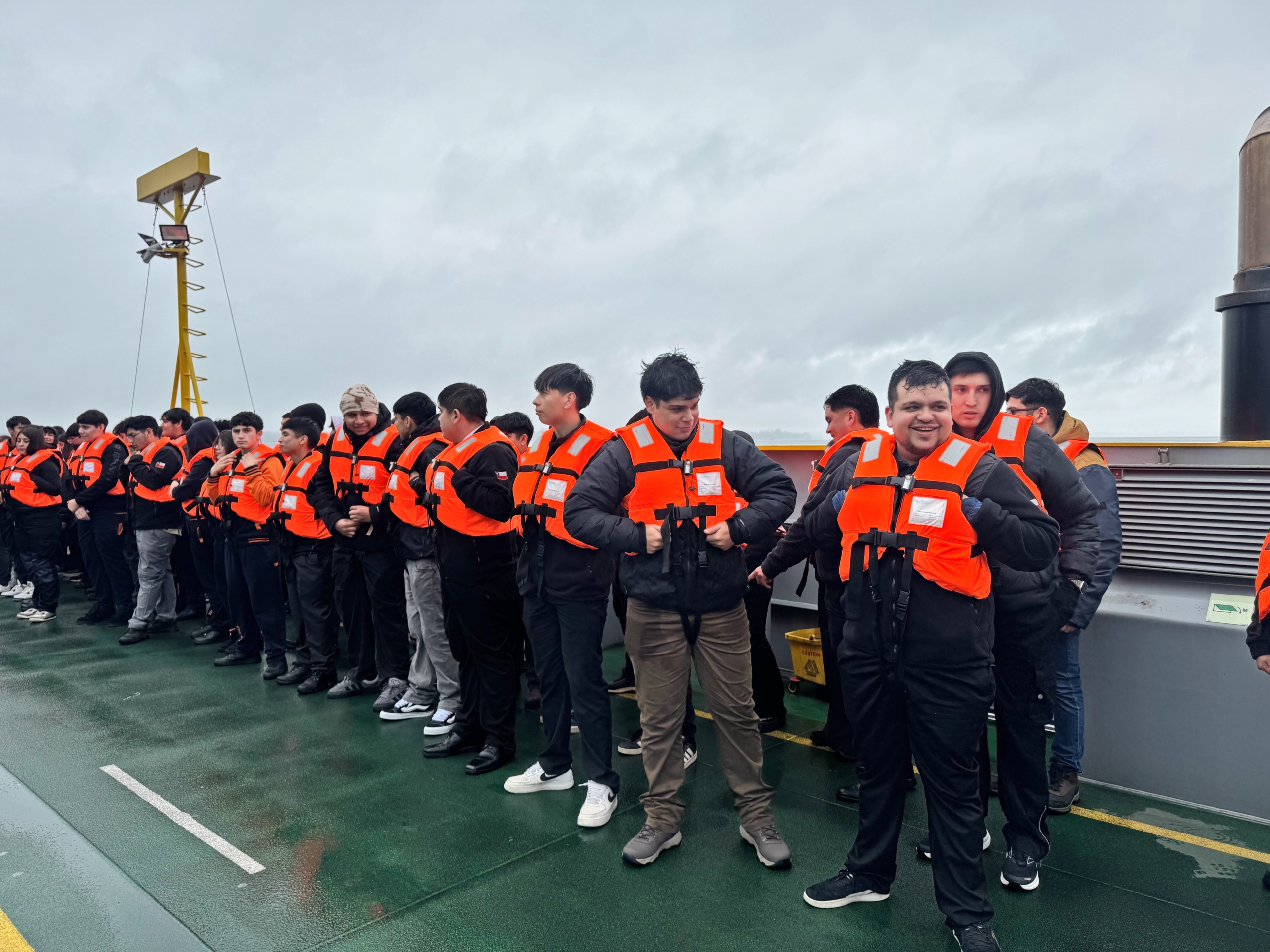 El zafarrancho se realizó en dos trasbordadores de la Asociación de Armadores de Transporte Marítimo Sur Austral (Armasur) y participaron estudiantes de las carreras de Técnico Universitario en Transporte Marítimo Costero y Técnico Universitario en Electromecánica Marítima.