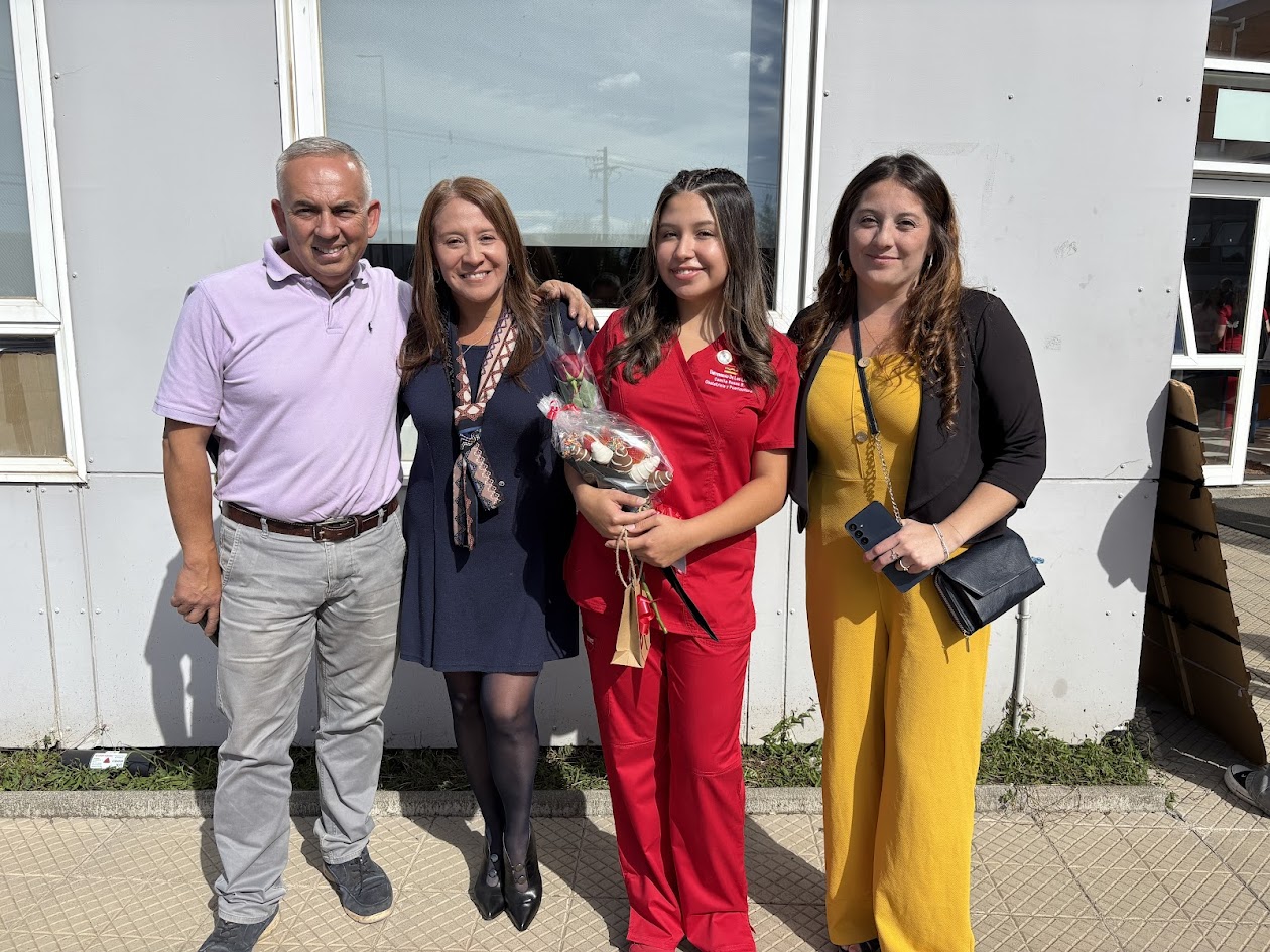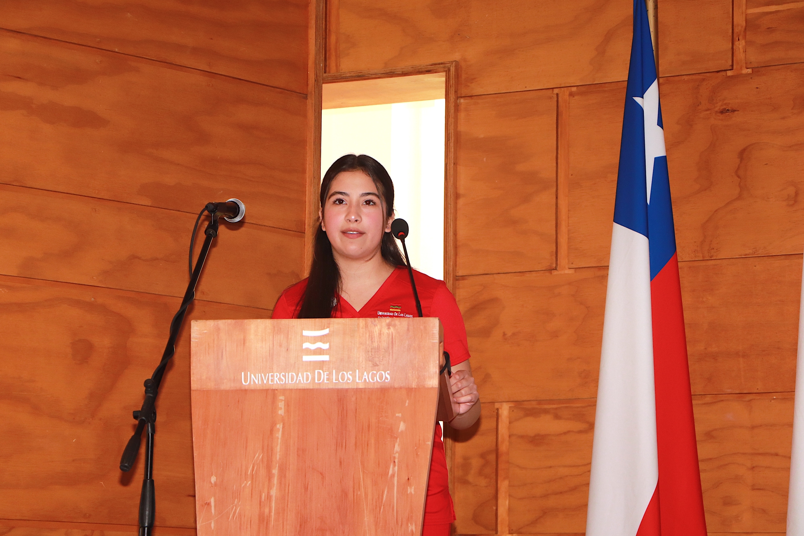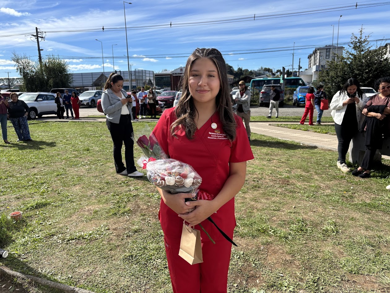 Camila Isidora Rosas Barría, es estudiante de segundo año, primer semestre de la carrera de Obstetricia y Puericultura. De Osorno, recibió la investidura como un paso significativo a las prácticas que son fundamentales en la carrera, en que incursionan en los Campos Clínicos.