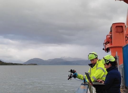 El doctor Patricio A. Díaz agregó que la navegación entre hielo y montañas ofrece un escenario único para estudiar cómo la descarga de agua dulce desde glaciares y ríos modula las condiciones hidrográficas de esta remota zona.