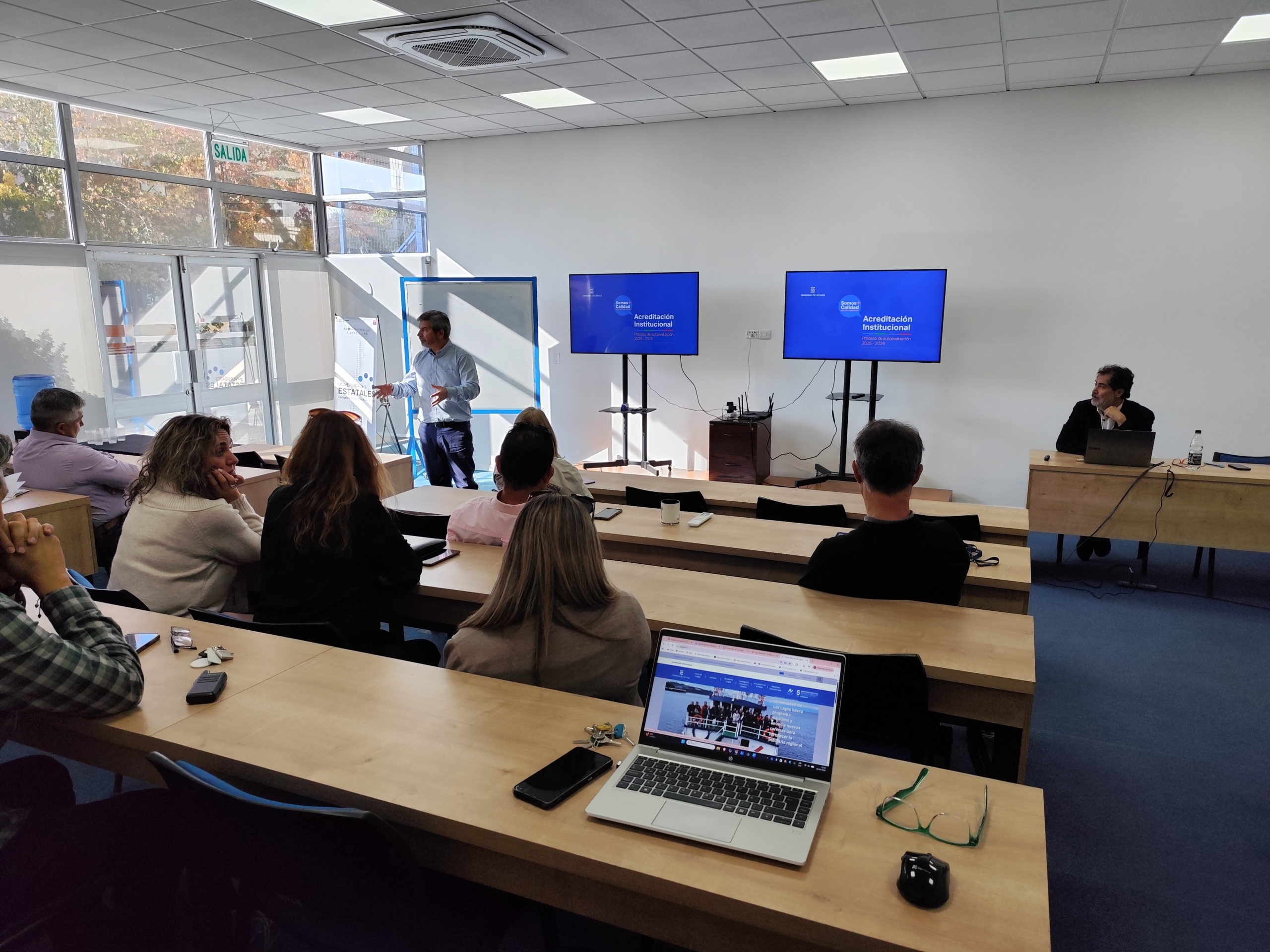 Entre el 21 y el 24 de abril, la Sede Santiago de la Universidad de Los Lagos fue escenario de una serie de reuniones clave encabezadas por Jorge Fernández Darraz, director de Gestión de Aseguramiento de la Calidad, en el marco del proceso de autoevaluación institucional que nuestra casa de estudios desarrolla con miras a su acreditación a fines de este año.
