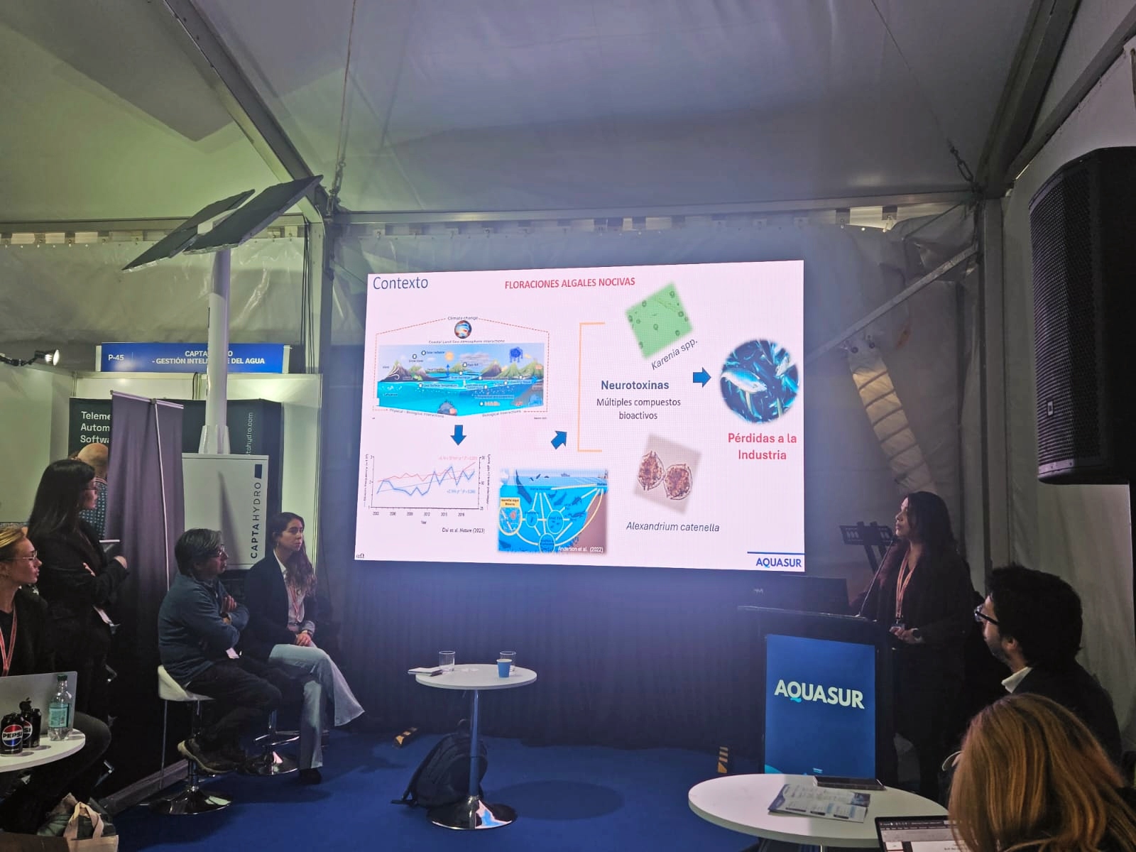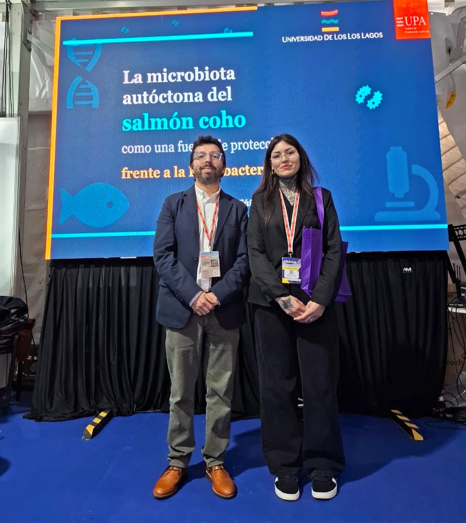 Por otro lado, la ULagos fue parte del espacio de innovación acuícola llamado “Blue Stage”, el cual tenía como centro propiciar el ecosistema de innovación, promover el emprendimiento y atraer inversión para acelerar la adopción de nuevas tecnologías en la acuicultura global. En dicha instancia, la tesista de la carrera de Biología Marina, Francisca Zúñiga, presentó el tema “La microbiota autóctona del salmón coho como una fuente de protección frente a la flavobacteriosis”; mientras que la investigadora del Centro i~mar, doctora Ángela Baldrich, expuso sobre “Microalgas neurotóxicas: algunas proyecciones de riesgos emergentes para la acuicultura oceánica e interior”.
