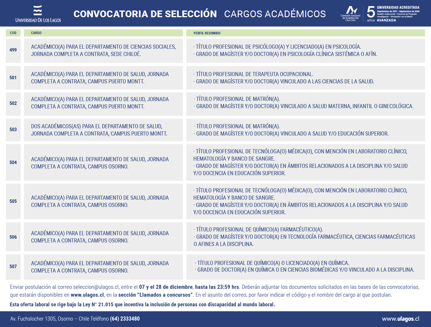 Decreto N°DDH-2025-00572 Aprueba bases para proveer cagos académicos cód. 480-491