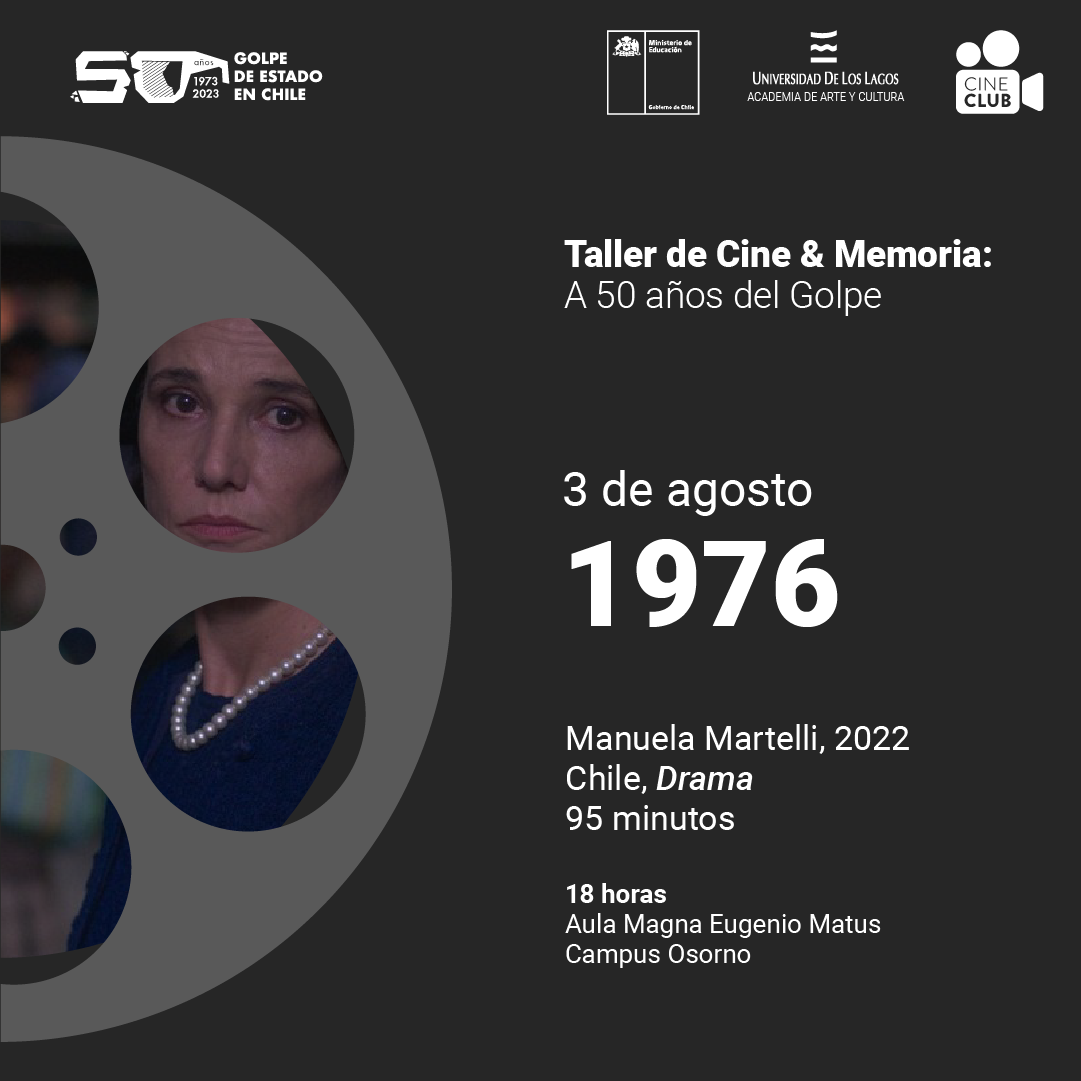 Este jueves 3 de agosto inauguramos un nuevo ciclo en el Cine Club ULagos, esta vez en el contexto de la conmemoración de los 50 años del golpe de Estado en Chile que realizará la Universidad de Los Lagos.