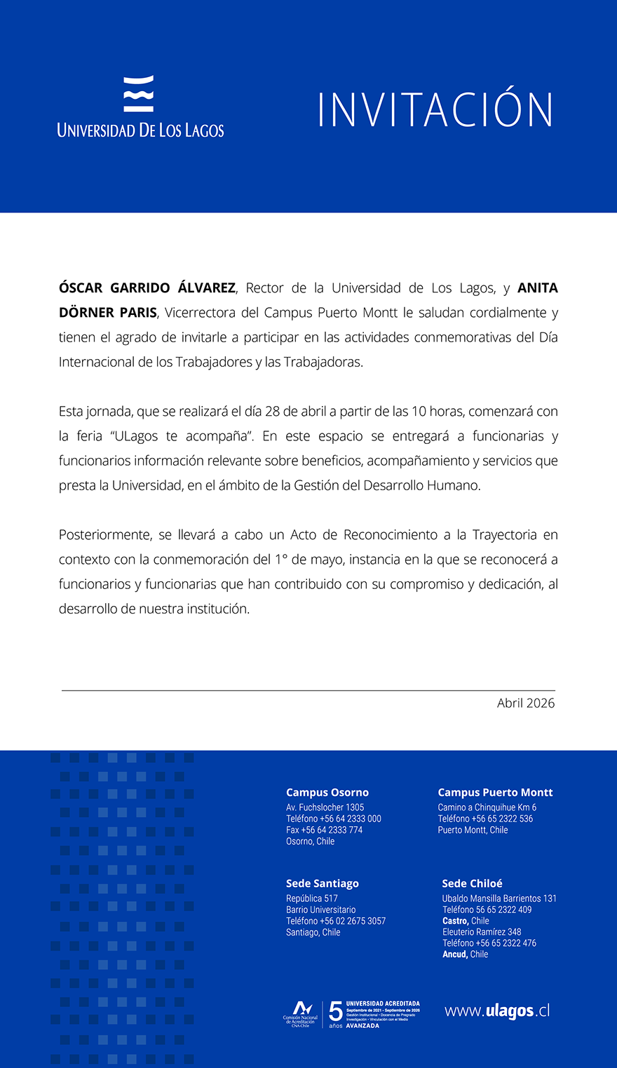 Actividades conmemorativas Día Internacional de los Trabajadores y las Trabajadoras – Campus Puerto Montt