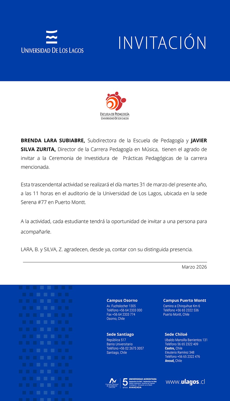 Ceremonia de Investidura 2026: Pedagogía en Música
