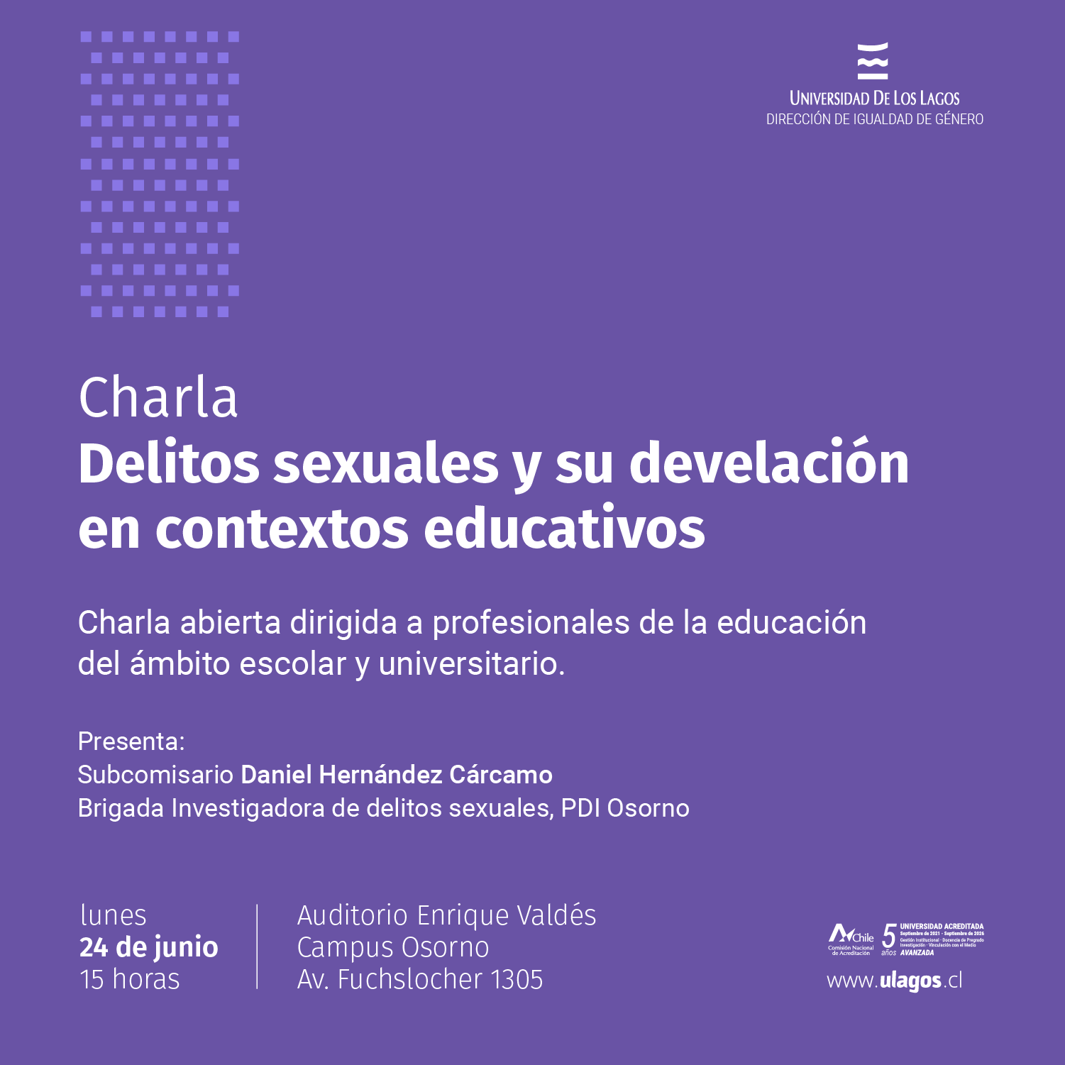 Charla «Delitos sexuales y su develación en contextos educativos»