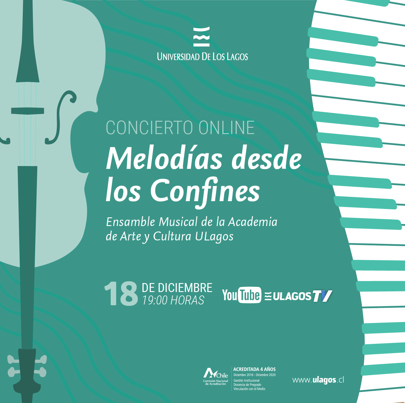 La Universidad de Los Lagos se complace en presentar su tradicional concierto de fin de año, titulado “Melodías desde los confines”, a cargo del Ensamble Musical de la Academia de Arte y Cultura.