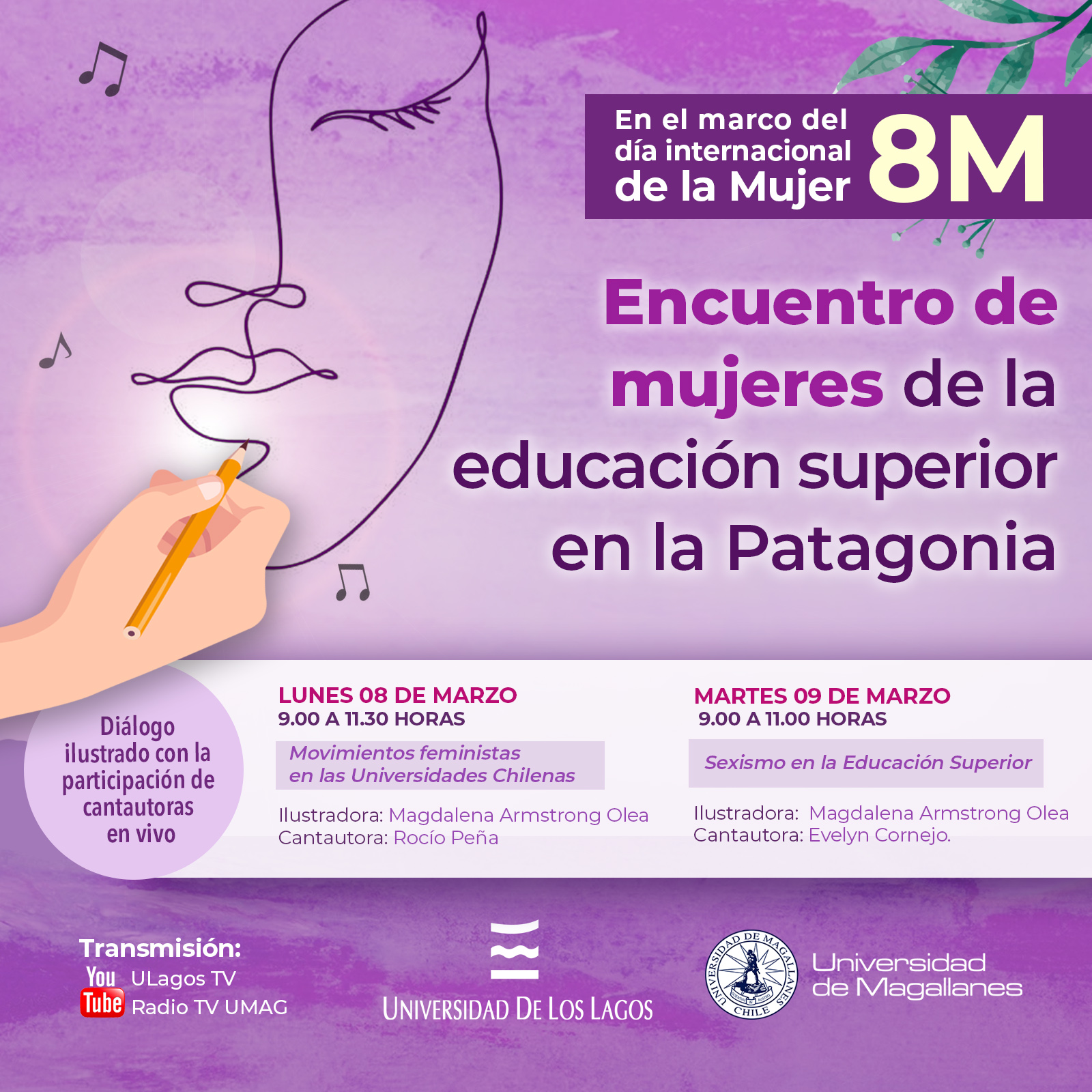 En conmemoración del Día Internacional de la Mujer Trabajadora, la Dirección de Igualdad de Género de la Universidad de Los Lagos, junto a la Dirección de Género, Equidad y Diversidad de la Universidad de Magallanes, invitan al Encuentro de mujeres de la Educación Superior en la Patagonia, los días 8 y 9 de marzo a las 9.00, transmitido a través del canal de youtube Ulagos TV.