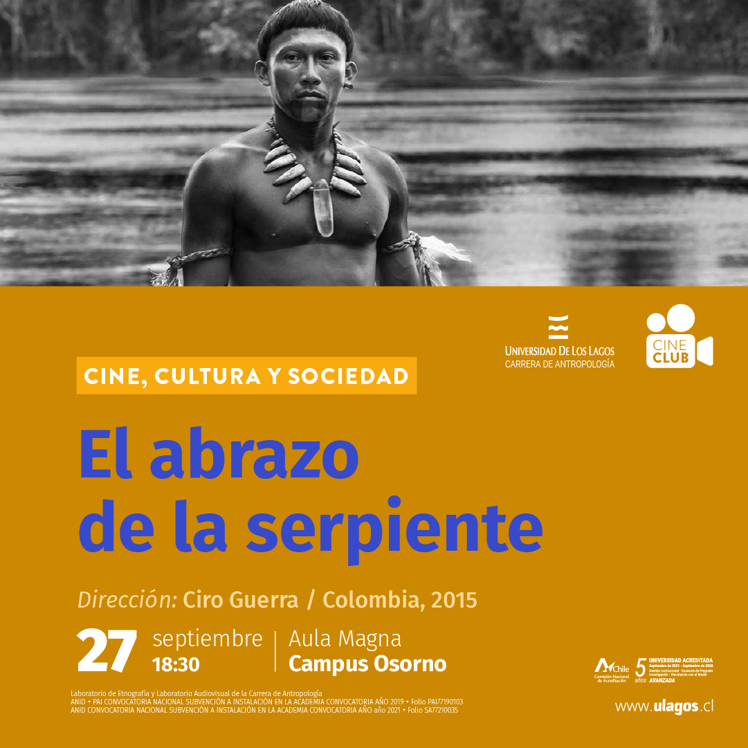 Continuando con el Ciclo Cine, Cultura y Sociedad junto a la carrera de Antropología, este martes 27 de septiembre exhibiremos «El abrazo de la serpiente» del director Ciro Guerra (Colombia, 2015).