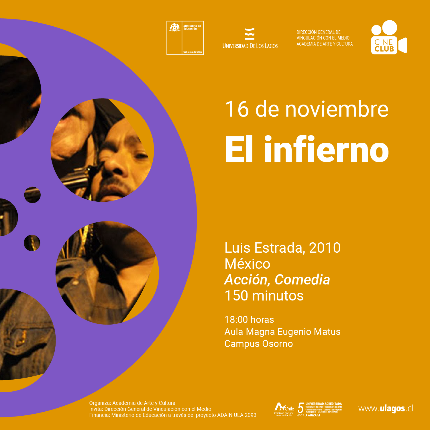 Este jueves 16 continuamos con la segunda entrega del Ciclo sobre Centroamérica, México y el Caribe, con una sátira de humor negro sobre el mundo de la droga, la crisis económica, la corrupción y la violencia en México, con «El Infierno» (2010) de Luis Estrada. El director ha hecho una exitosa carrera a partir de 1999 cuando estrena «La Ley de Herodes» abordando de manera satírica los conflictos sociales, políticos y la corrupción en los sucesivos gobiernos de México, con 5 películas de esta temática a su haber.