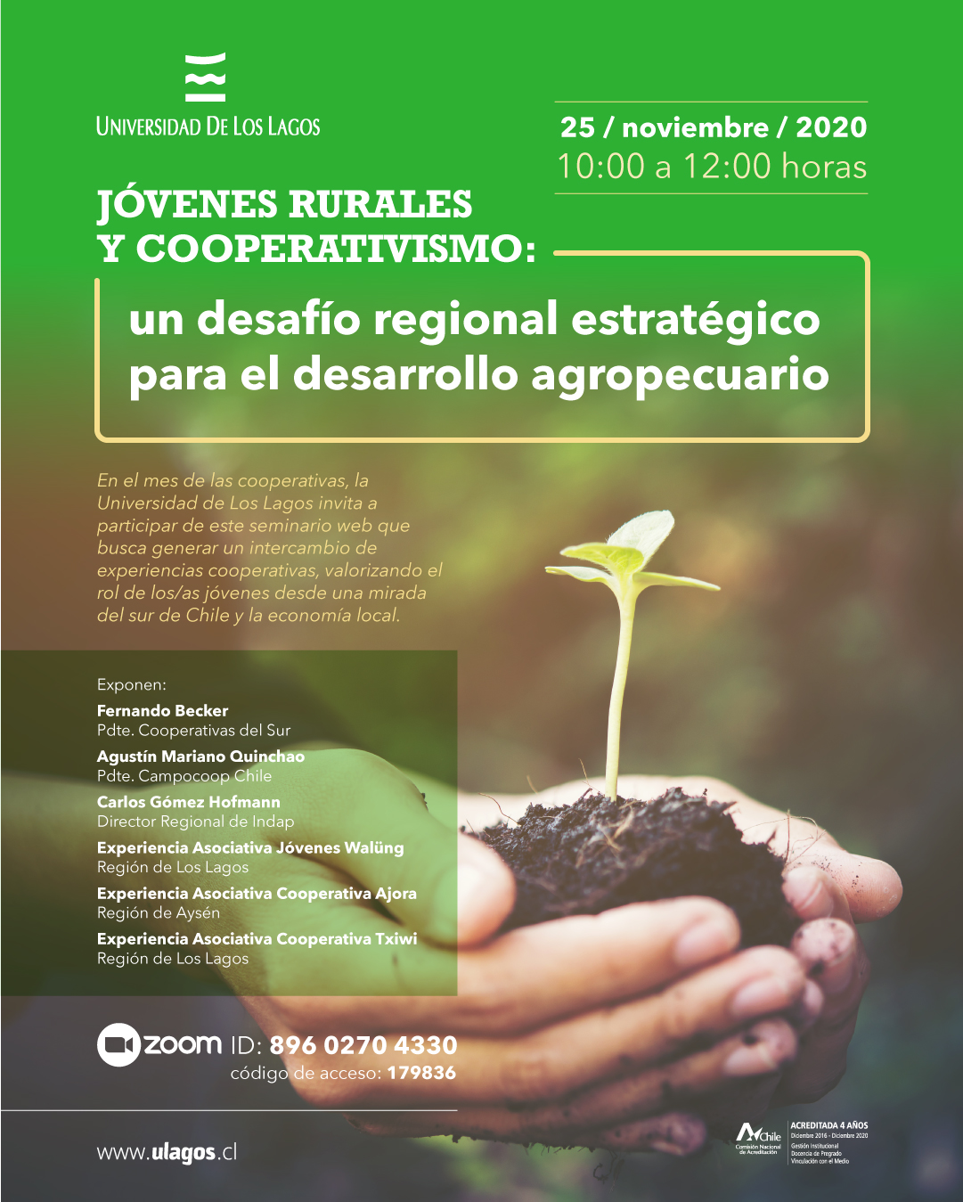 Seminario Web «Jóvenes Rurales y Cooperativismo: Un desafío regional estratégico para el desarrollo agropecuario», es el nombre del encuentro en que la ULagos invita a participar y generar un intercambio de experiencias cooperativas. Este miércoles 25 de noviembre a las 10:00 horas.